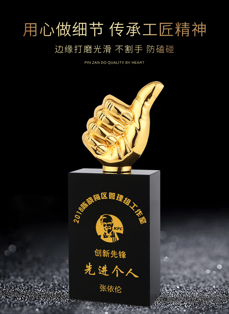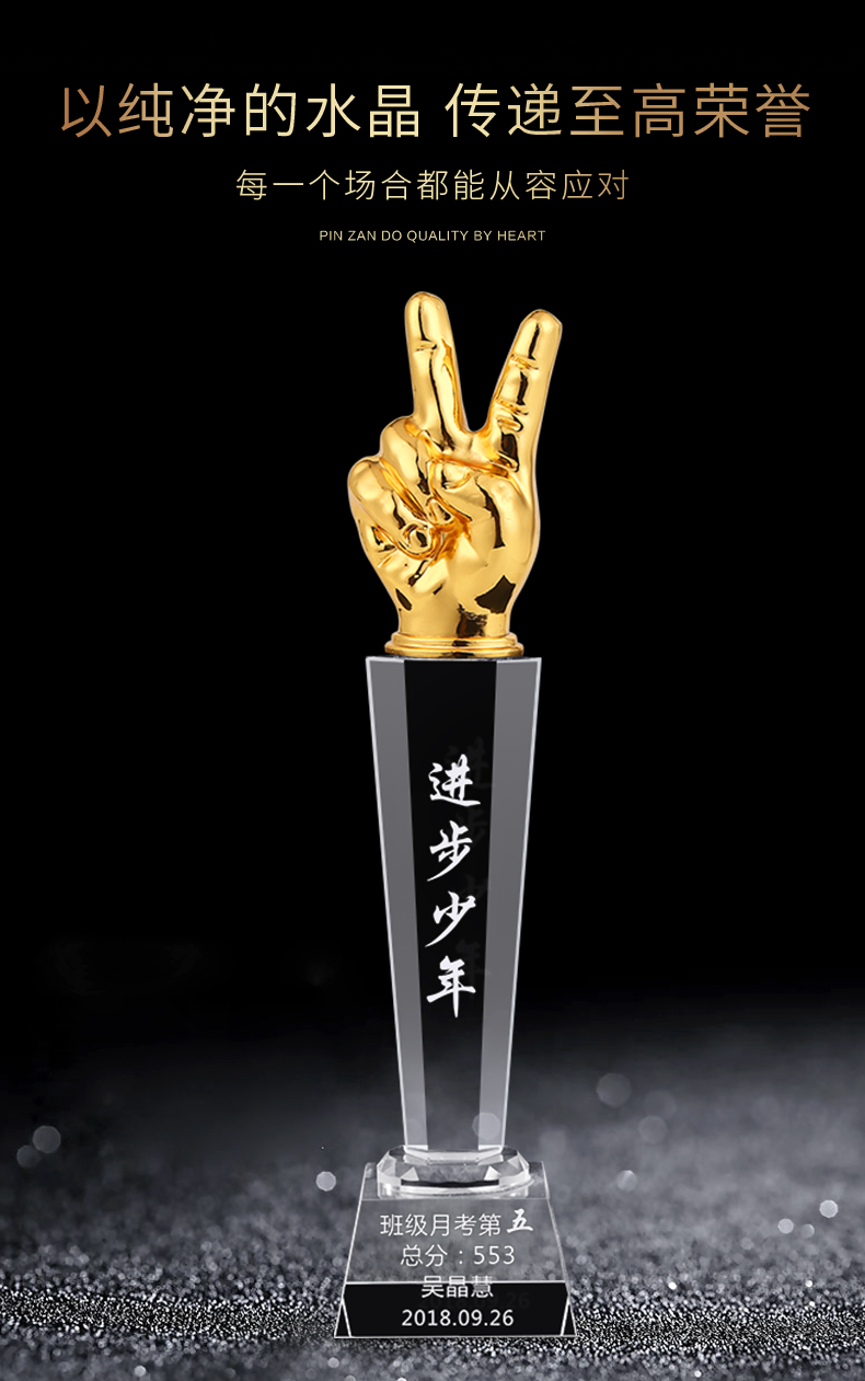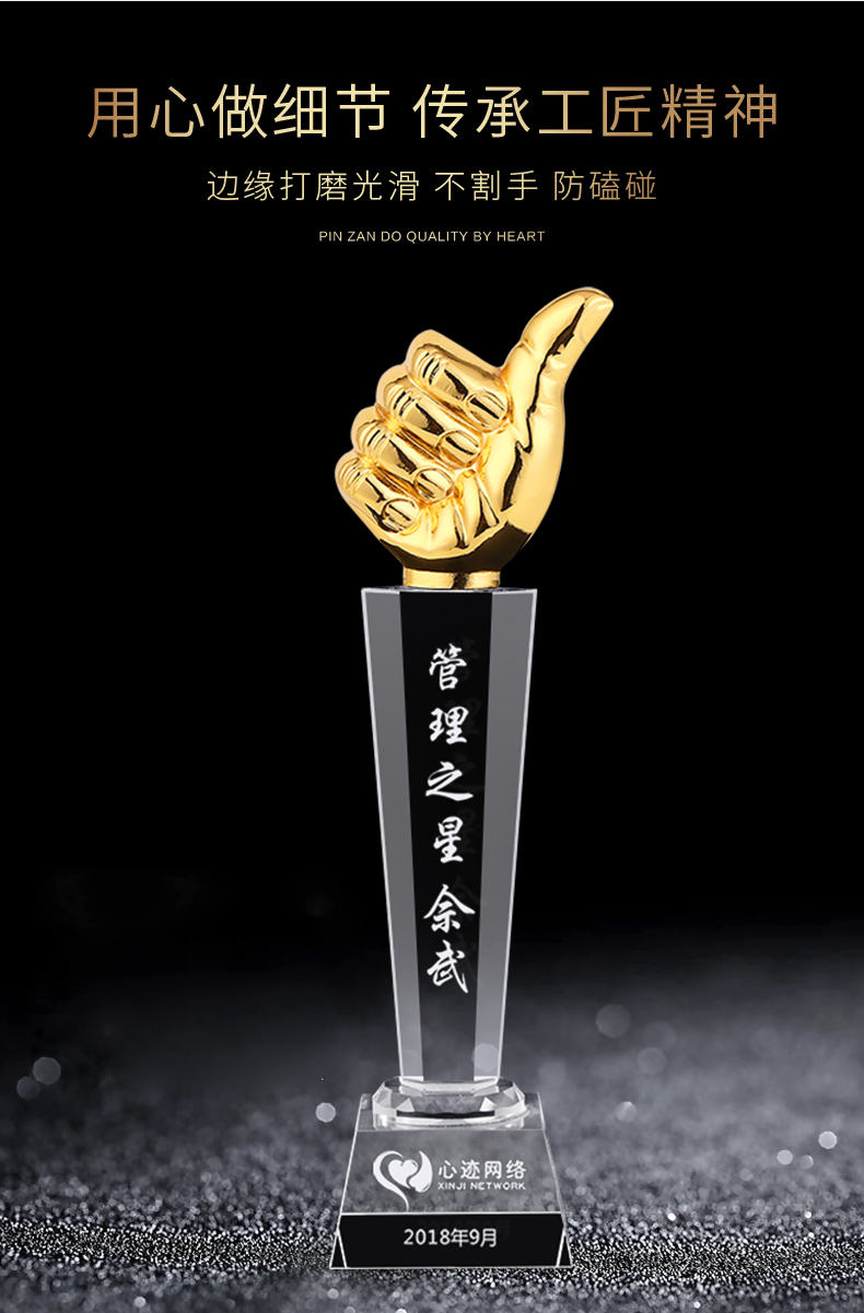 1014 / 金属水晶奖杯定制创意大拇指幼儿园中小学生公司比赛活动奖励