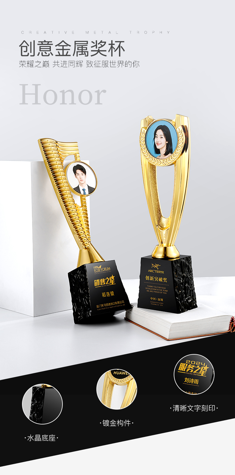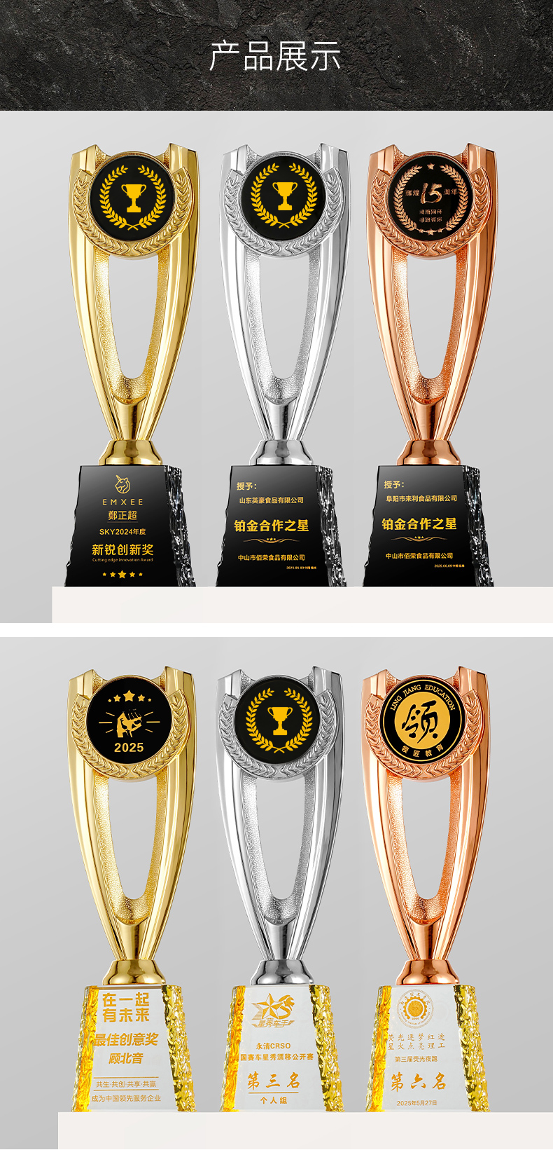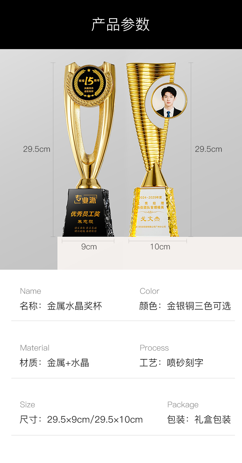 1023 / 创意奖杯2025新款定制定做高档大气优秀员工颁奖金属奖杯制作