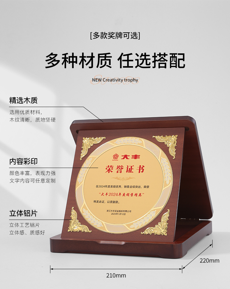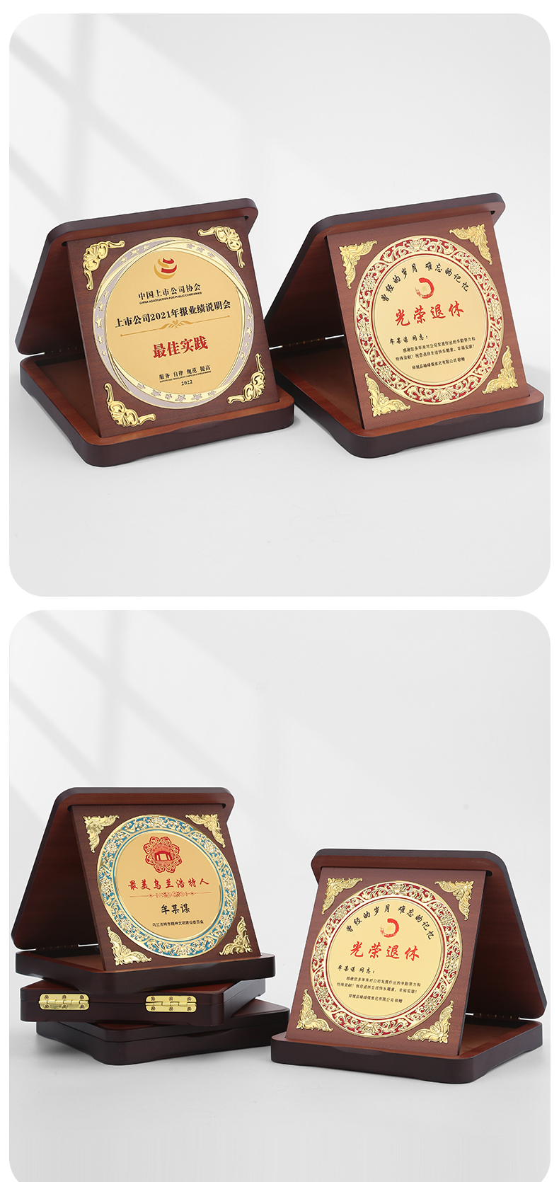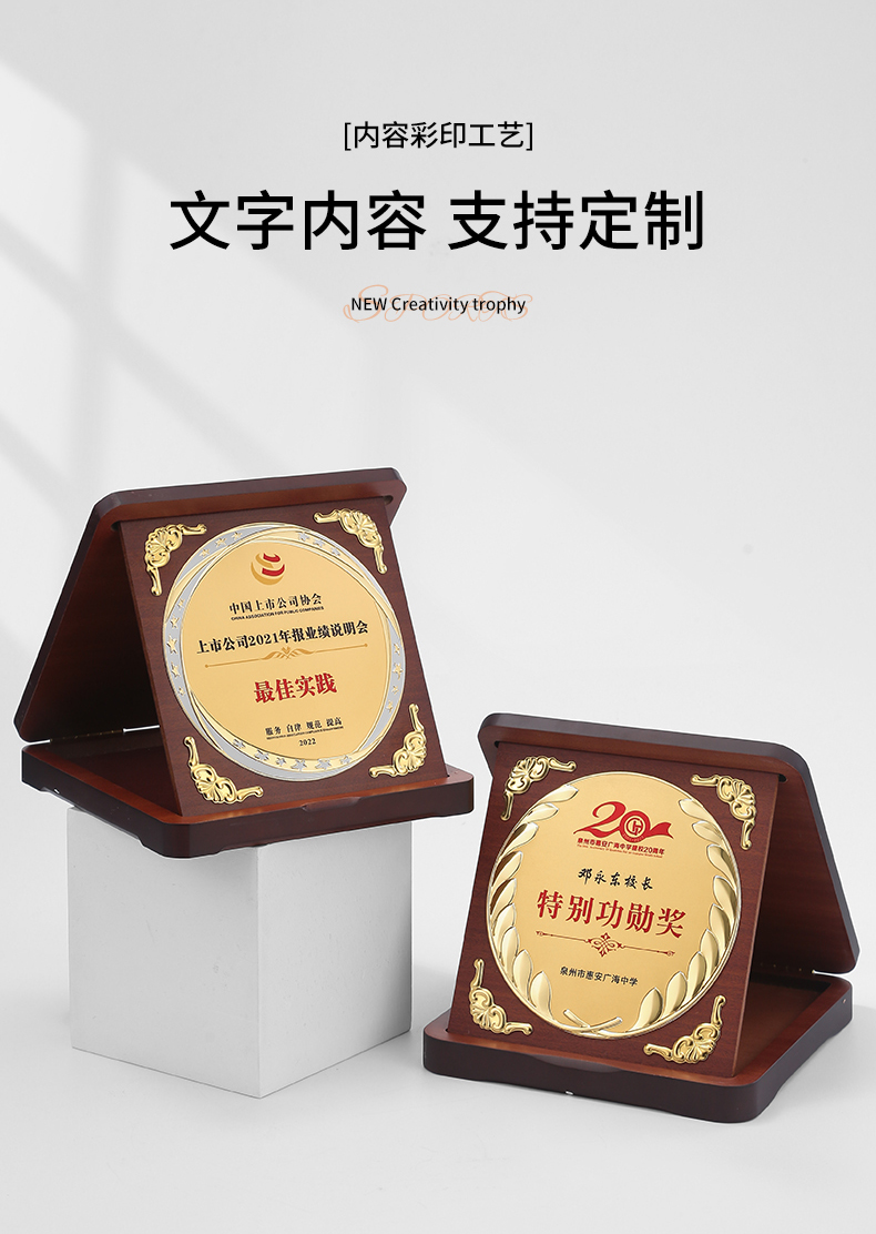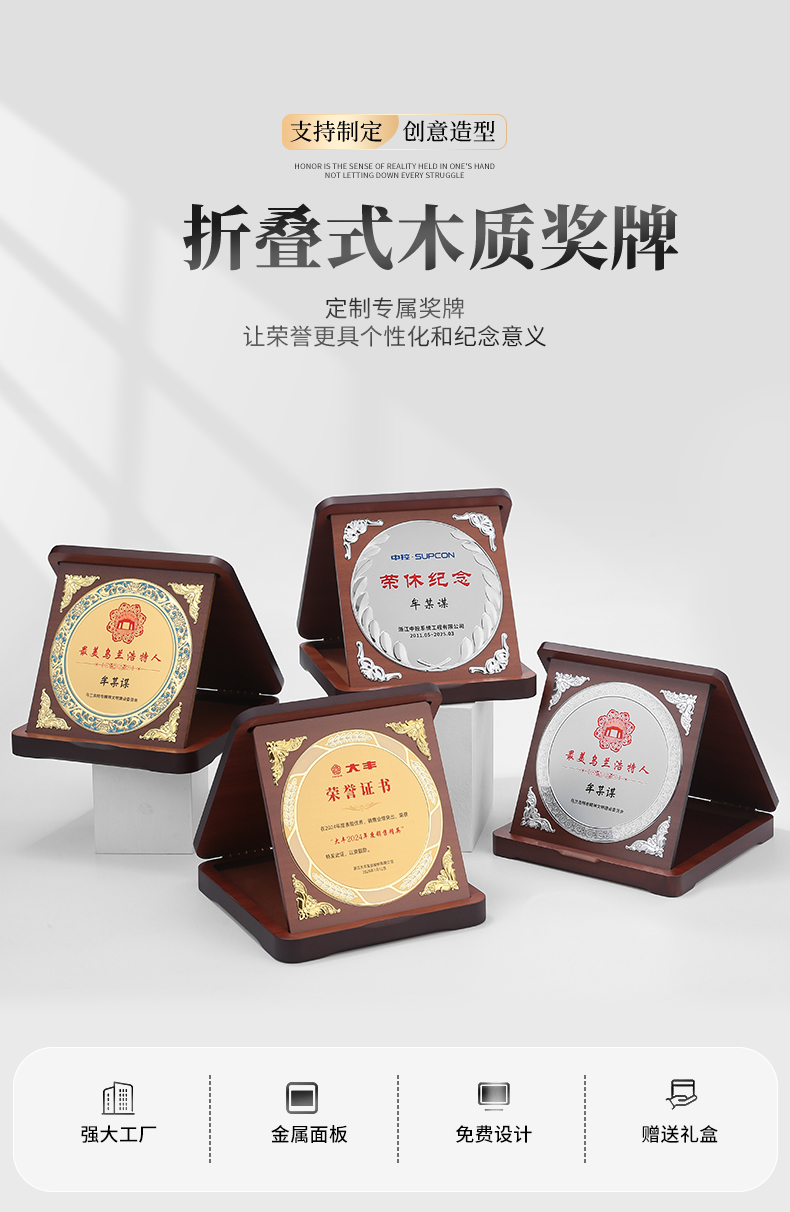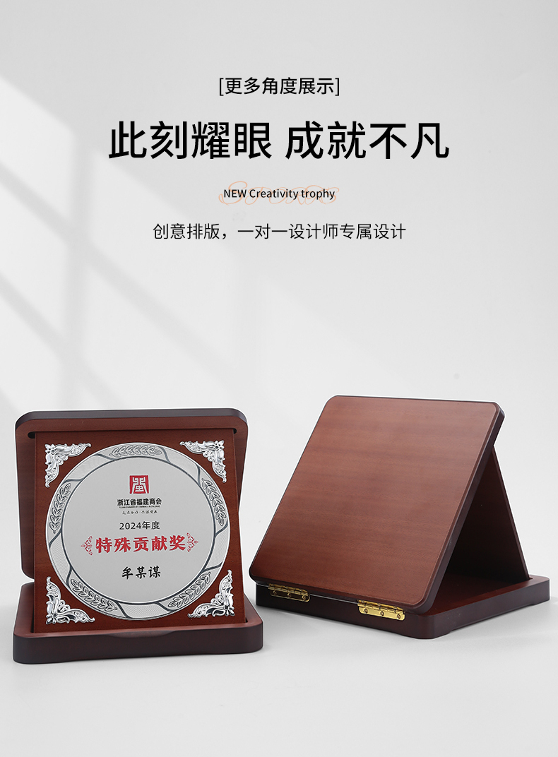 607 / 三折盒奖杯奖牌定制公司纪念品员工奖品客户纪念伴手礼退休纪念奖杯定制