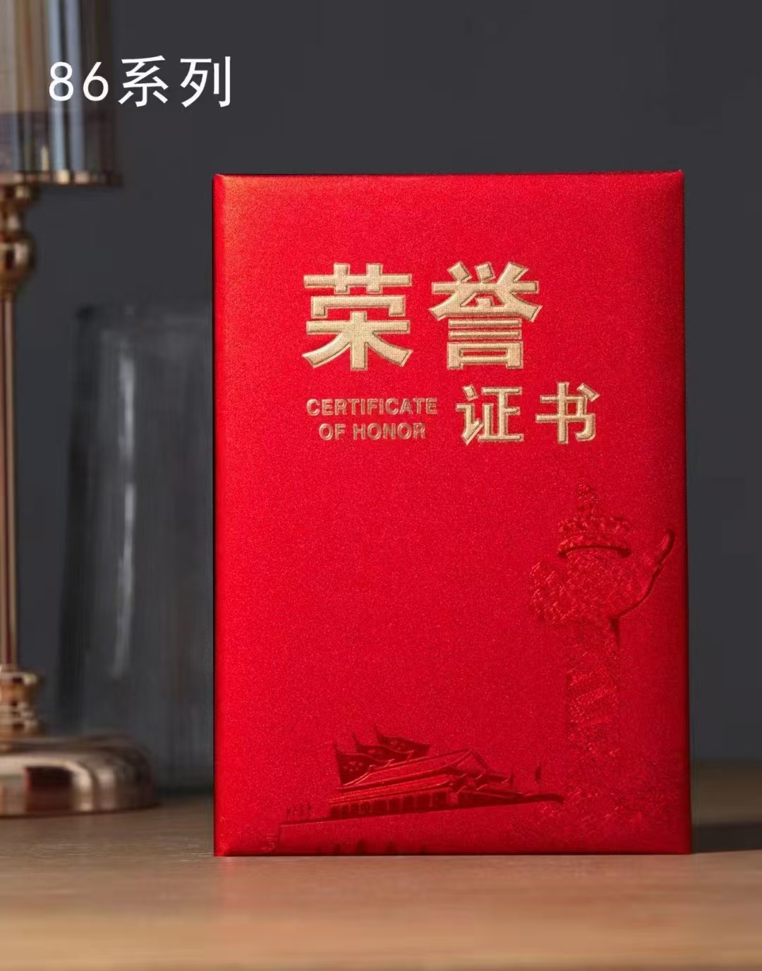 1053 / 大红色嘉奖证书高级丝绸面烫金毕业证书可加印