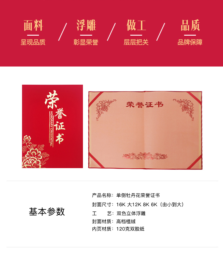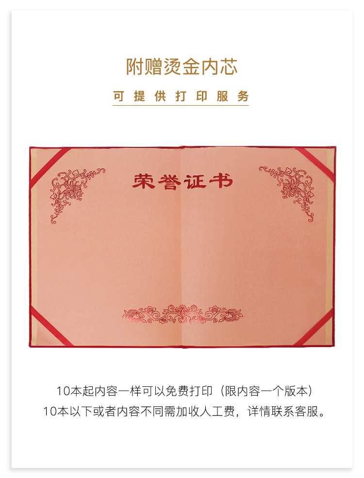 1064 / 荣誉证书外壳套制作订定做内页打印封面聘书结业证书优秀员工奖状
