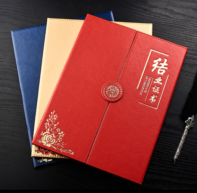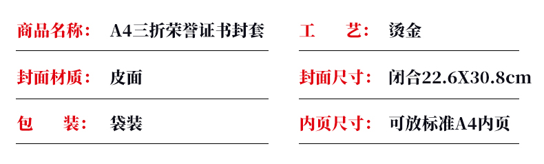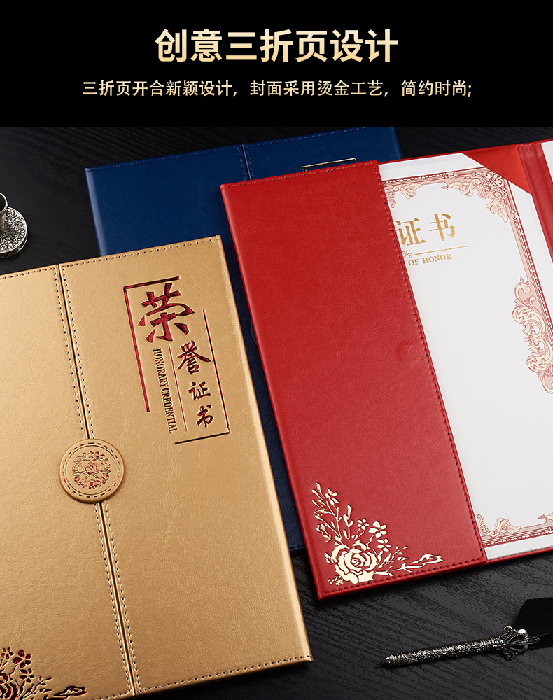 1071 / 折叠式皮面荣誉证书a4三折证书皮革证书优秀员工外壳奖状仿皮内页