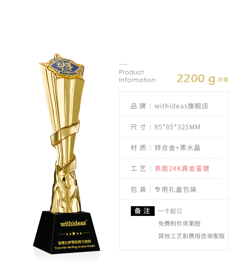 1089 / 高档高级高端大气水晶创意奖牌年会颁奖制作金属刻字定制定做奖杯