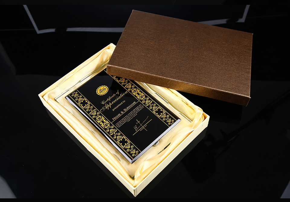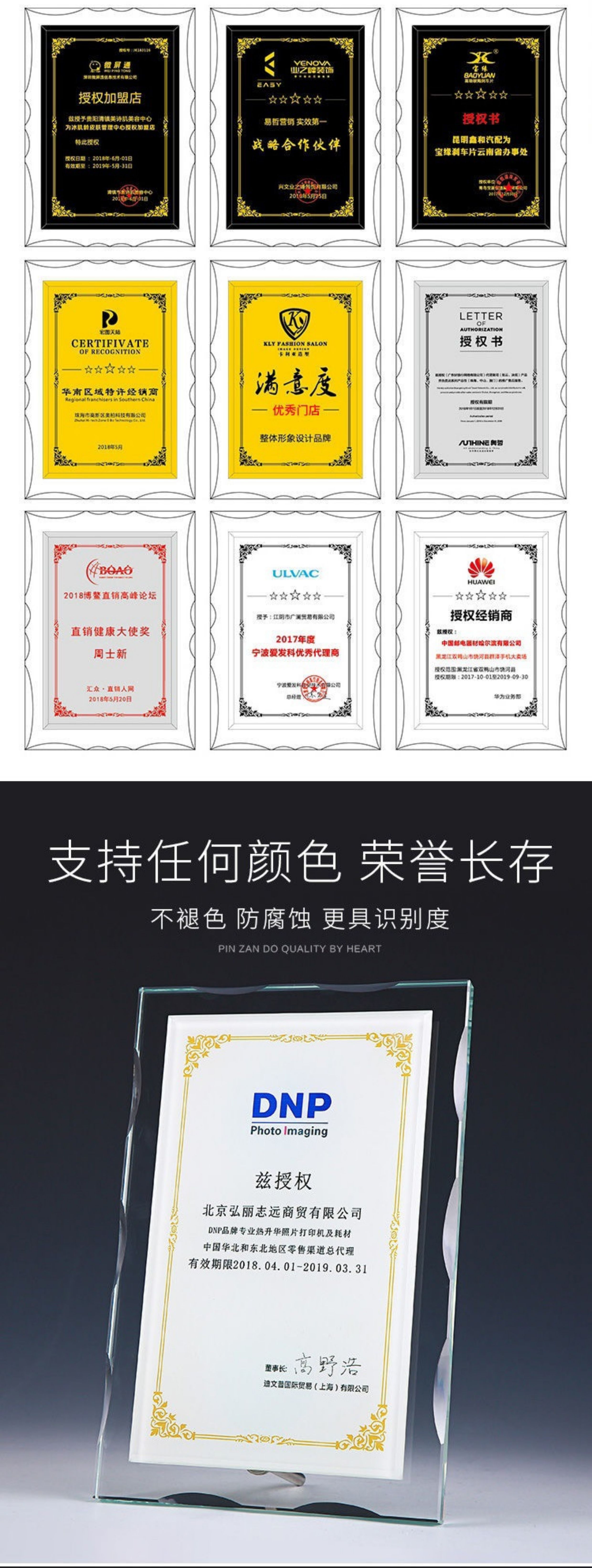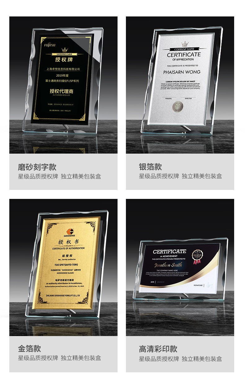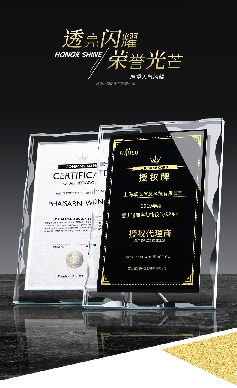 106 / 高档水晶授权牌创意金属奖杯定制胡桃木授权书代理商感谢牌奖座