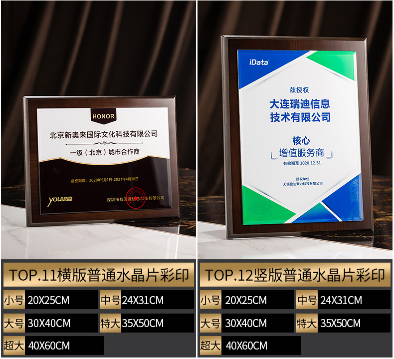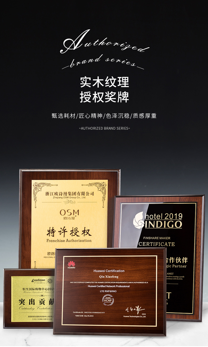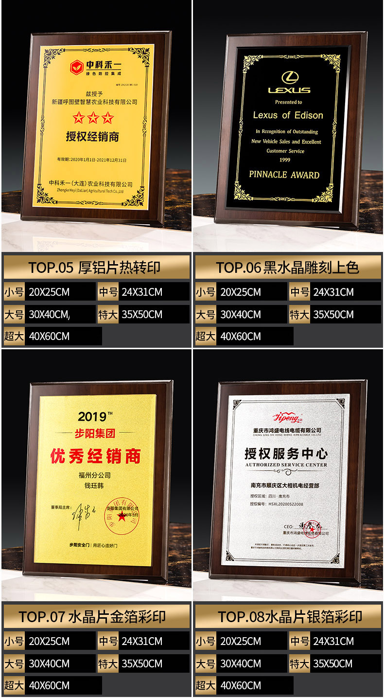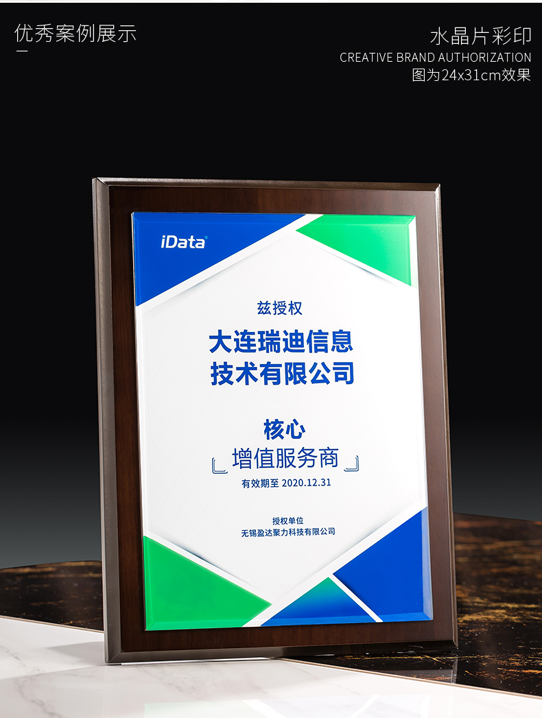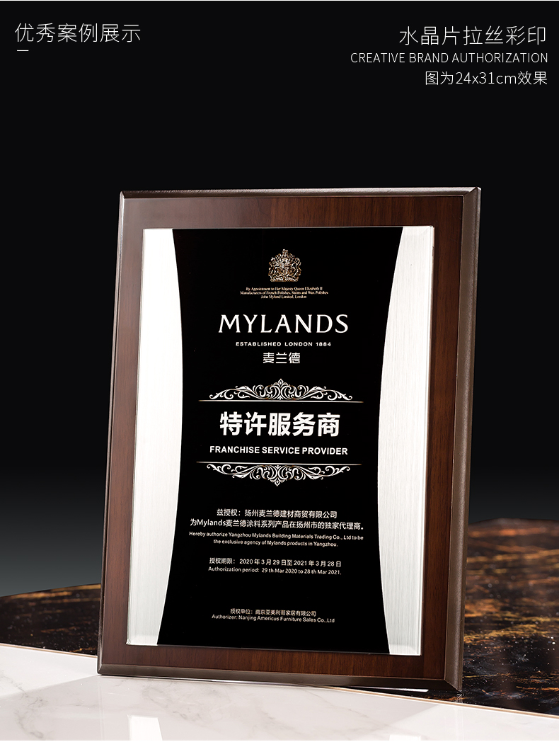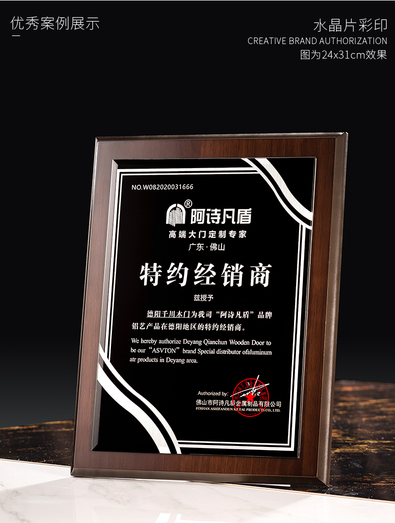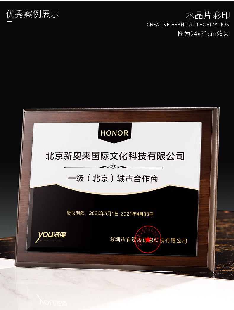 535 / 奖牌定制木质水晶授权牌商会战略合作伙伴牌匾加盟代理商荣誉证书