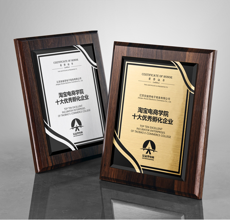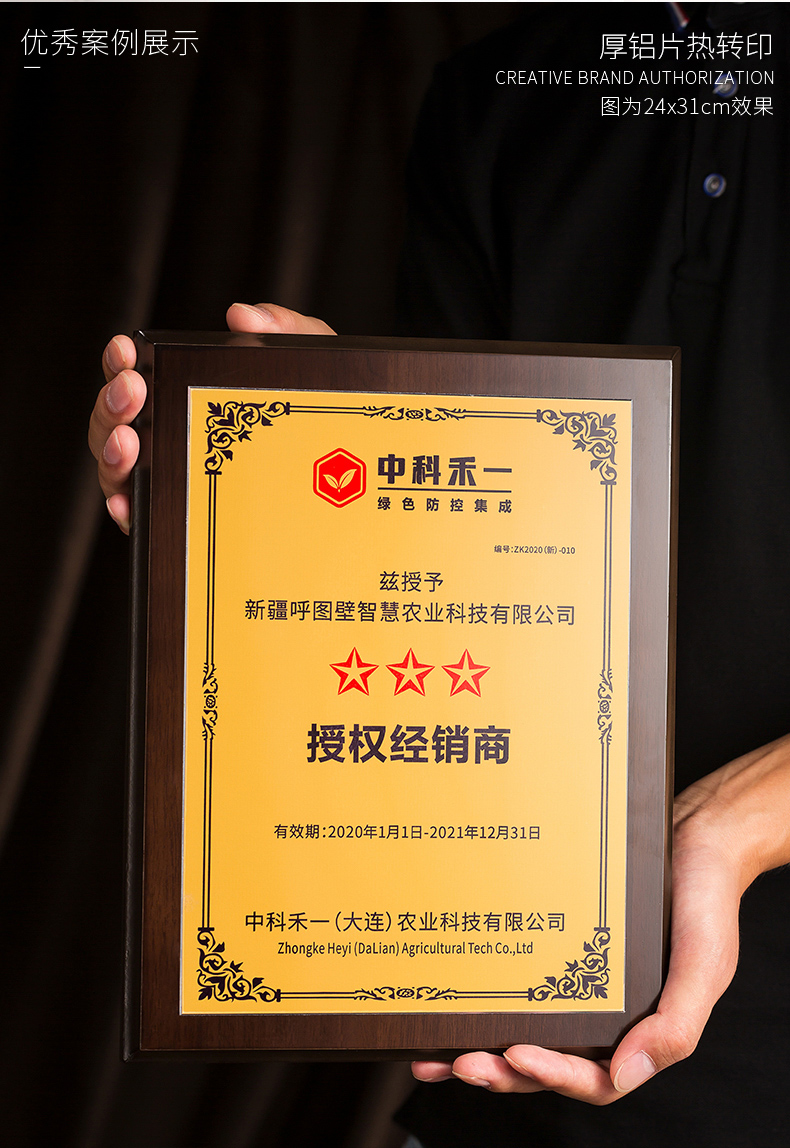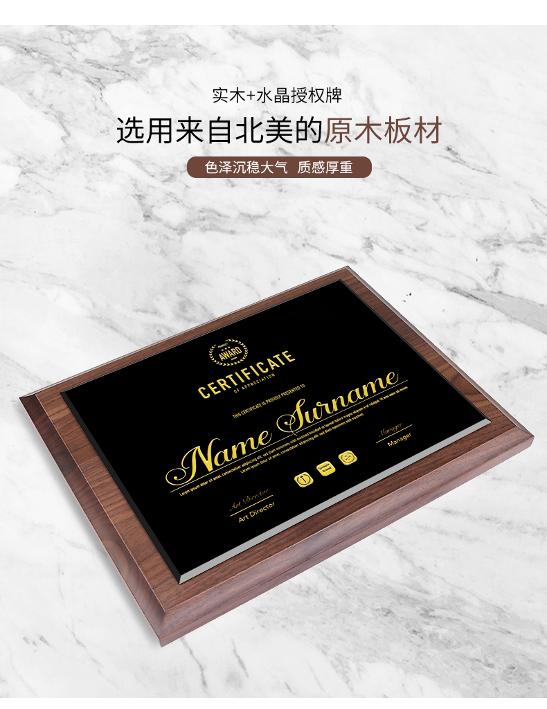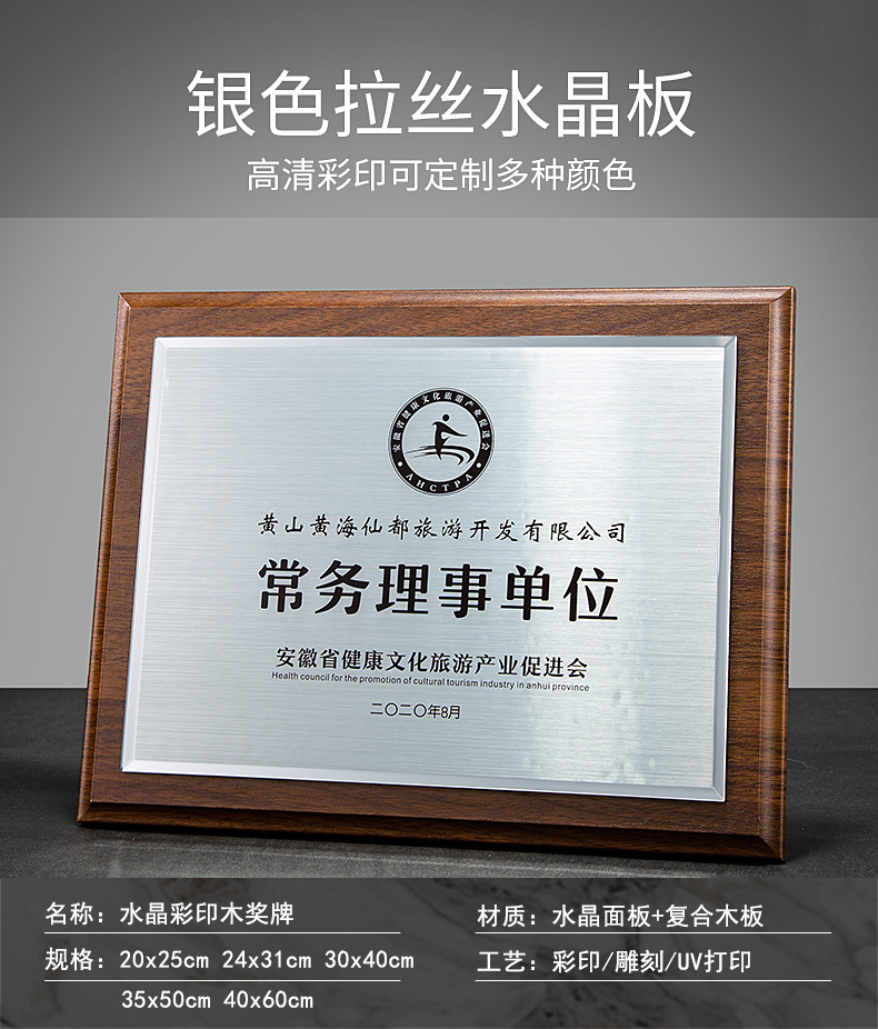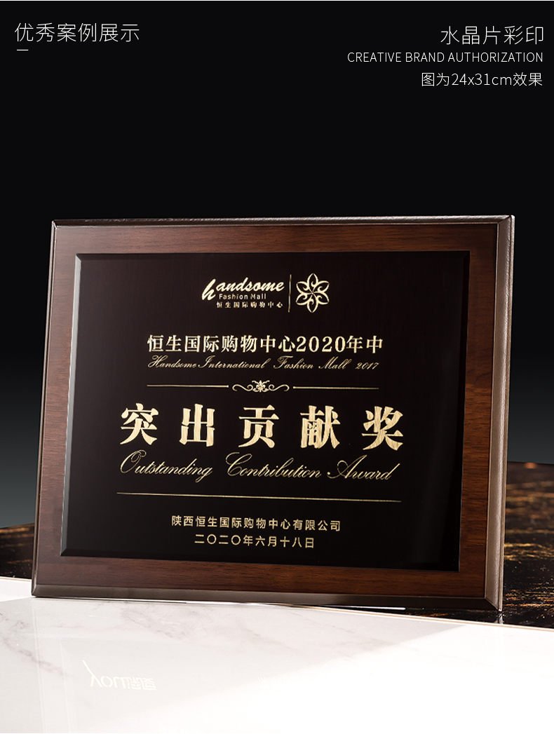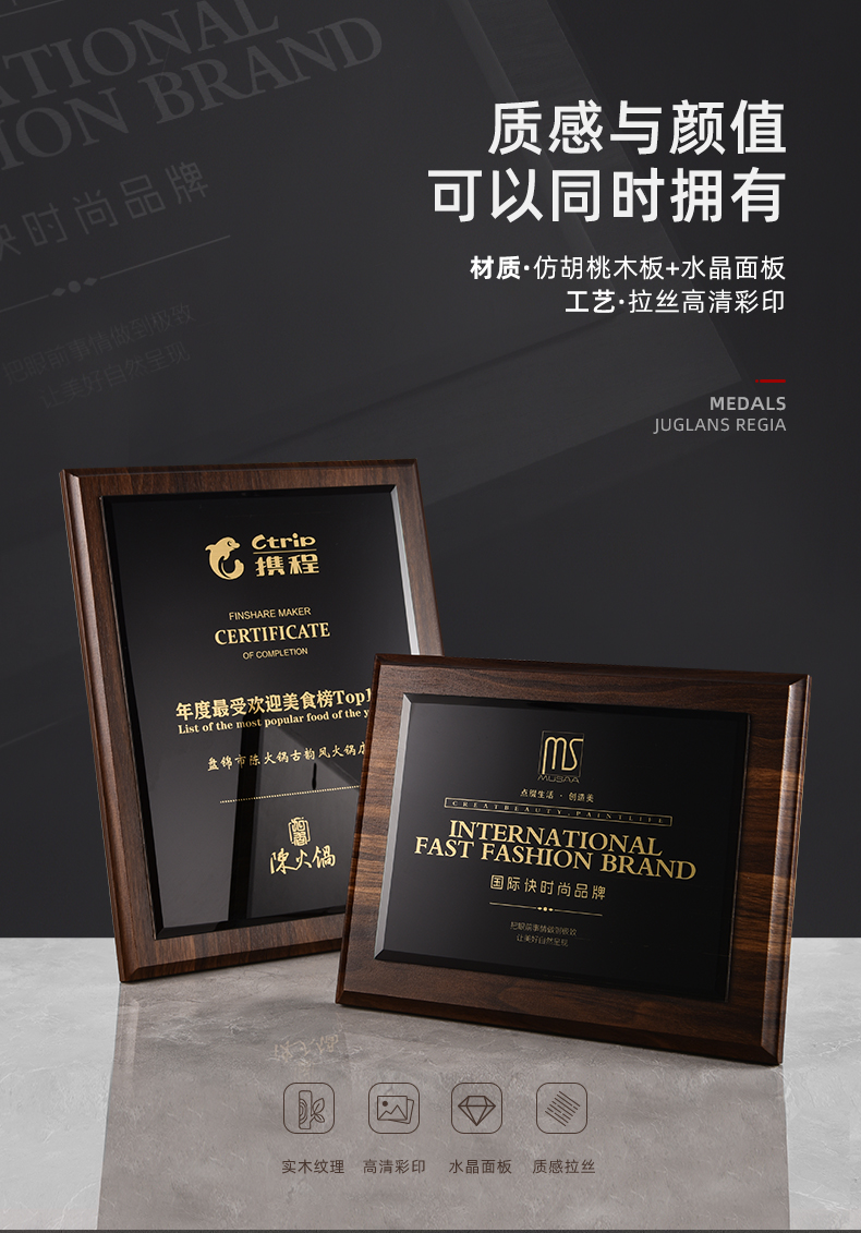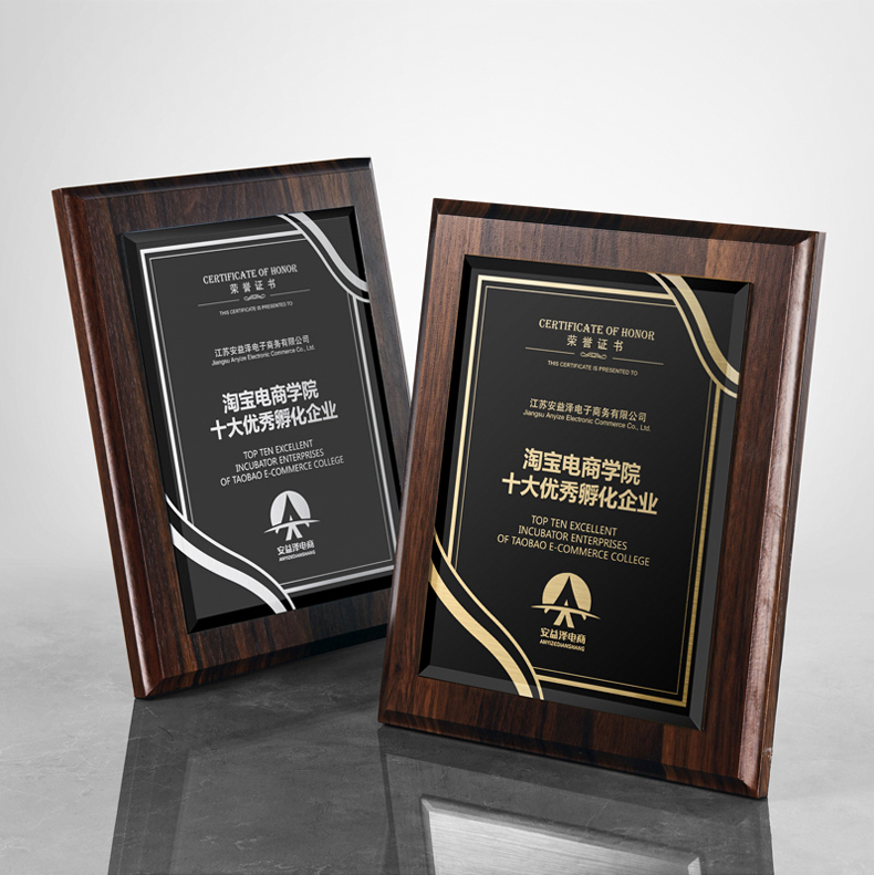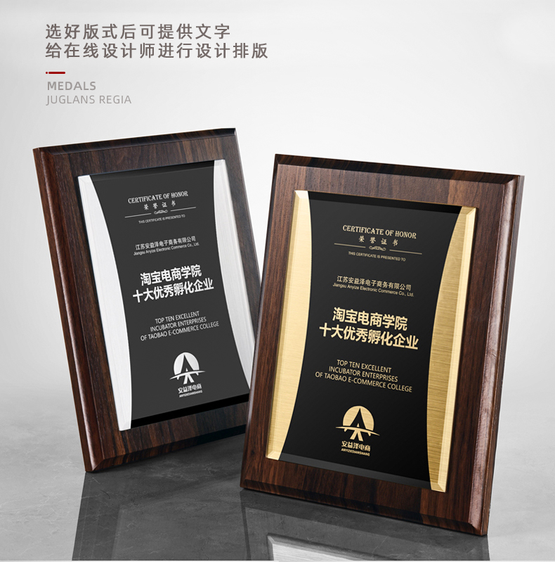 535 / 奖牌定制木质水晶授权牌商会战略合作伙伴牌匾加盟代理商荣誉证书