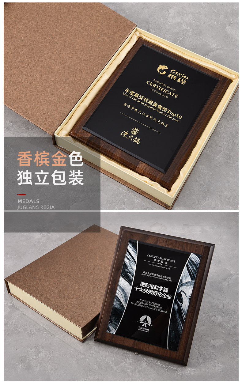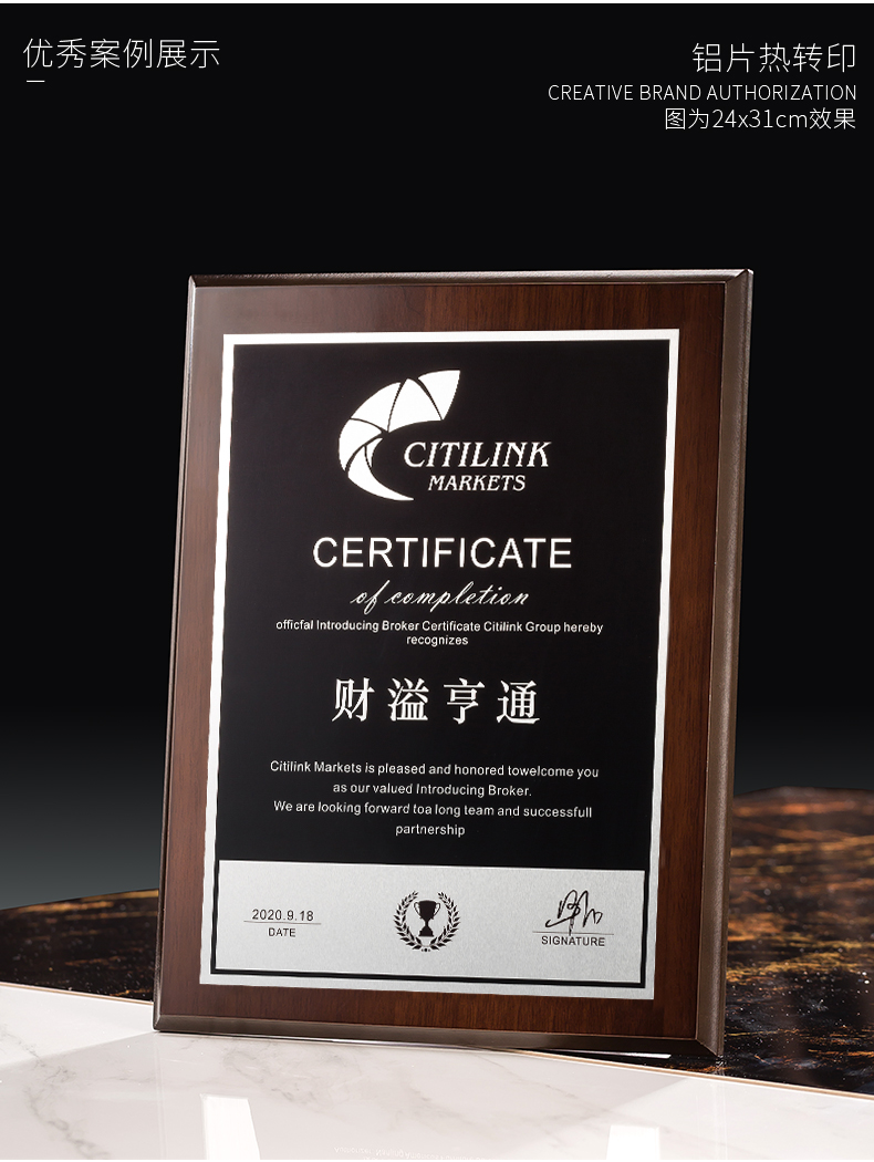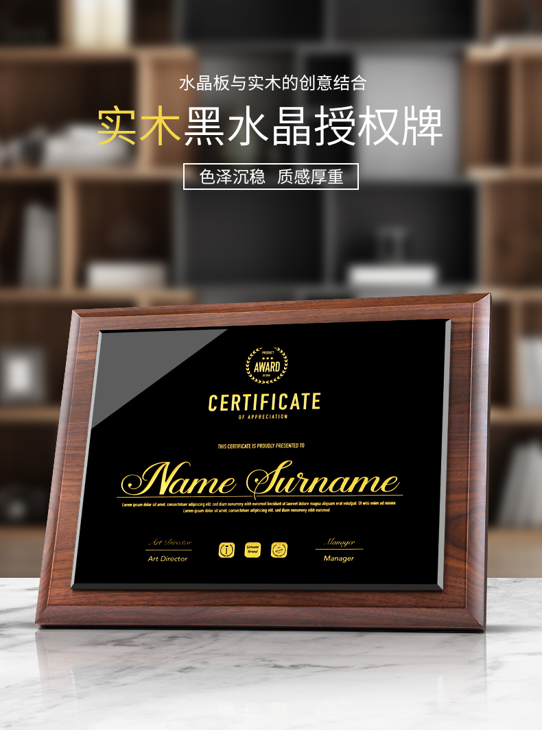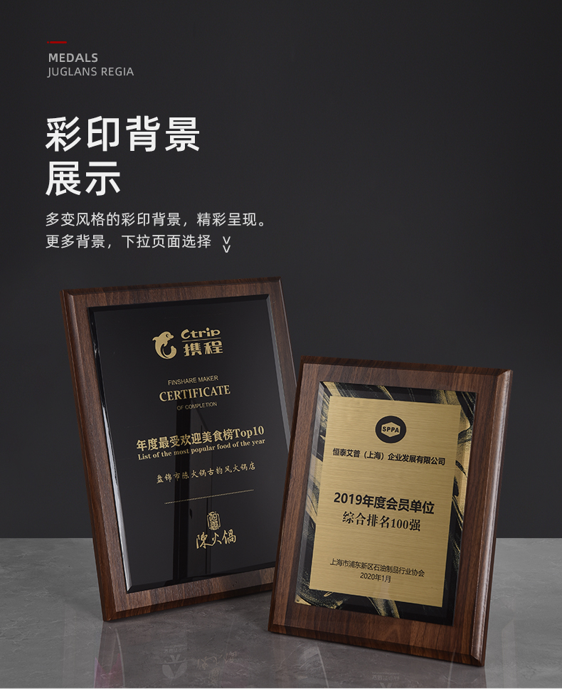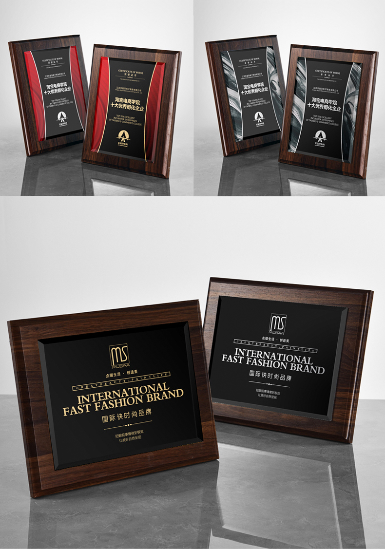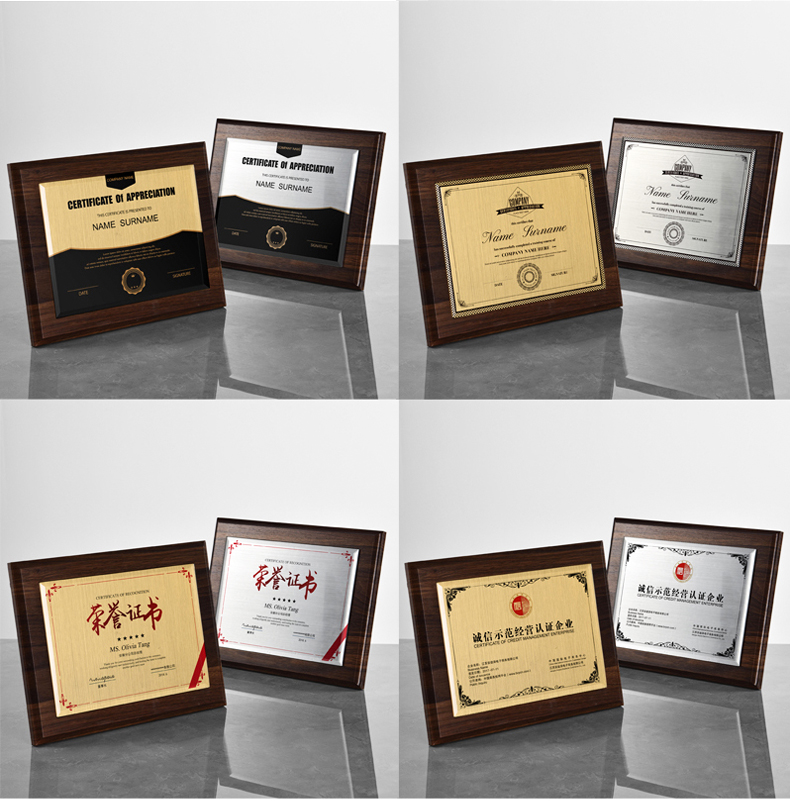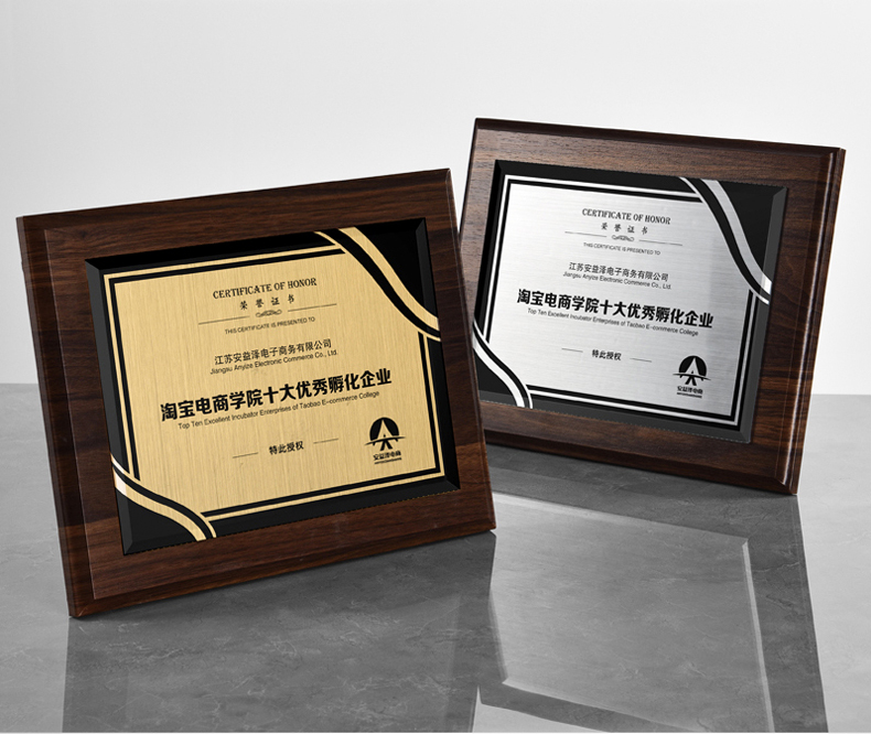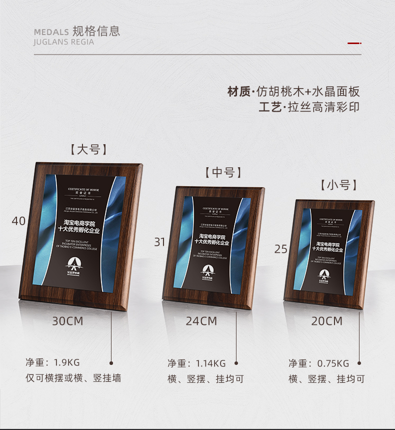 535 / 奖牌定制木质水晶授权牌商会战略合作伙伴牌匾加盟代理商荣誉证书