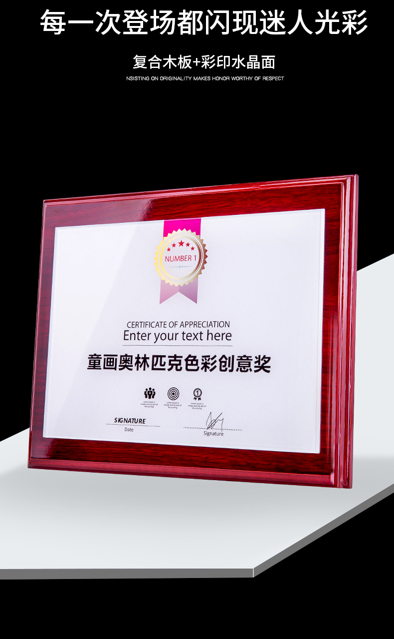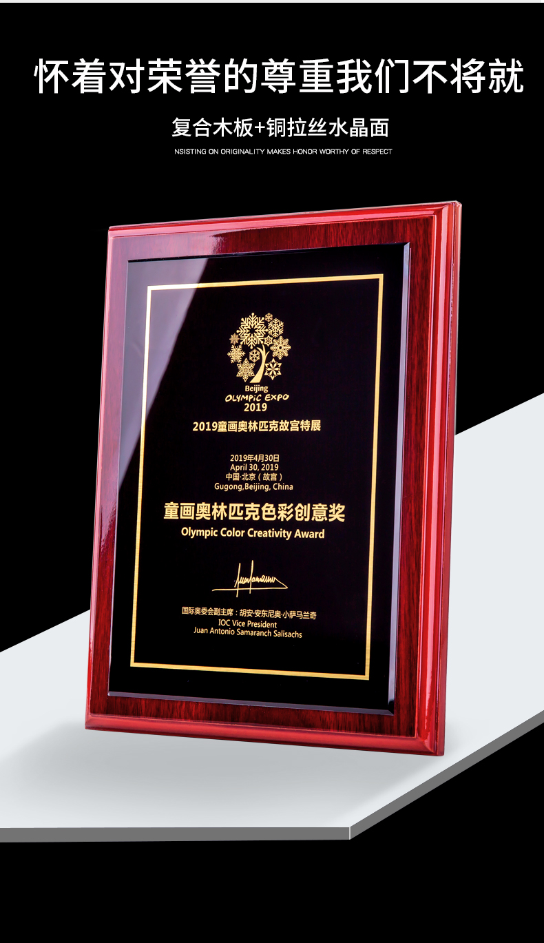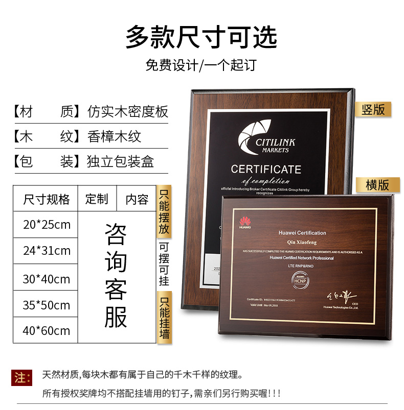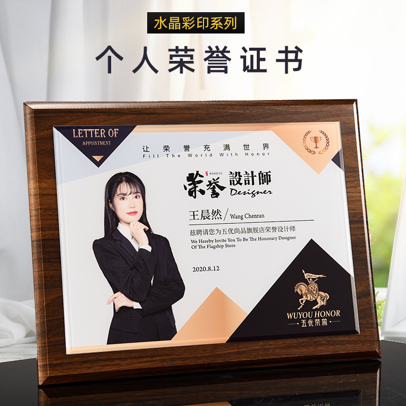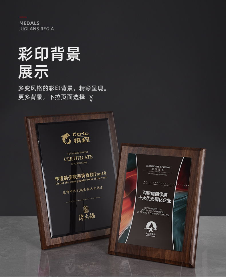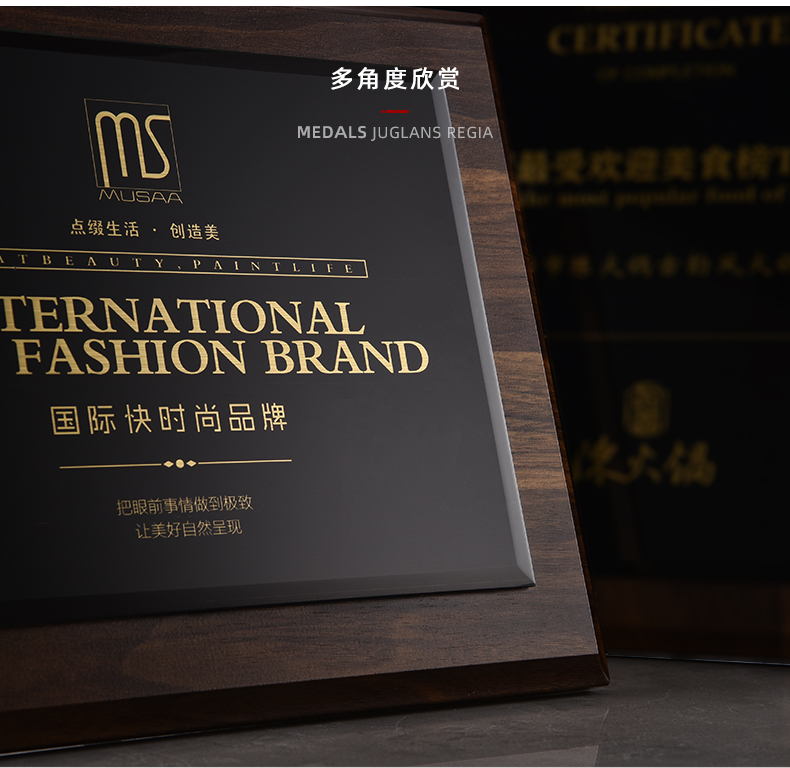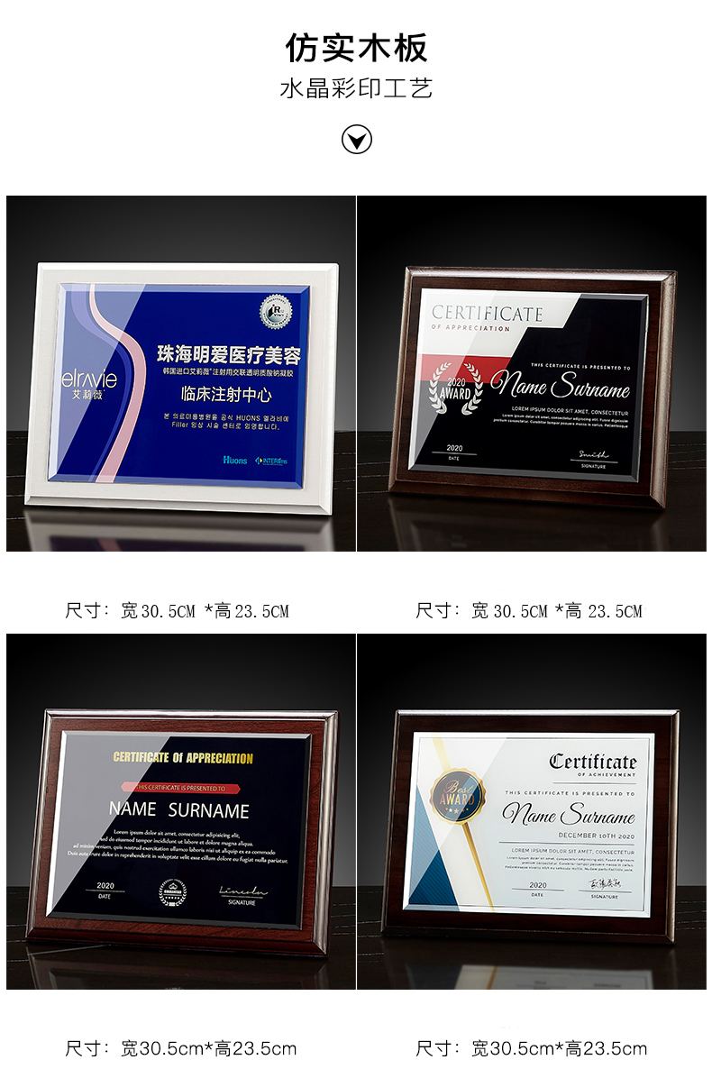 535 / 奖牌定制木质水晶授权牌商会战略合作伙伴牌匾加盟代理商荣誉证书