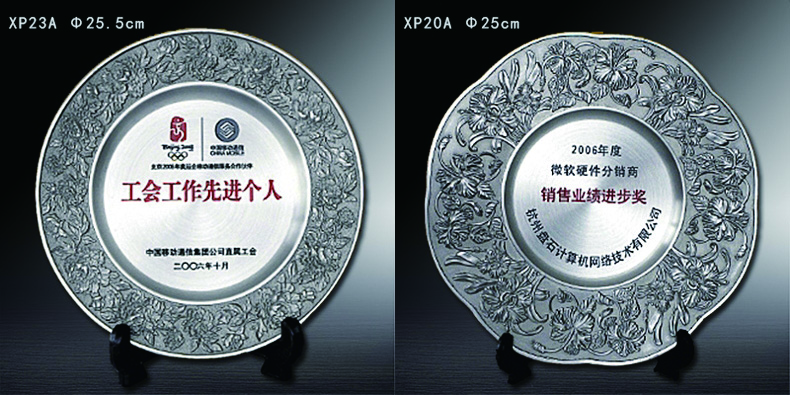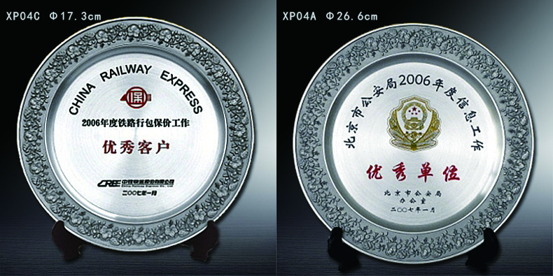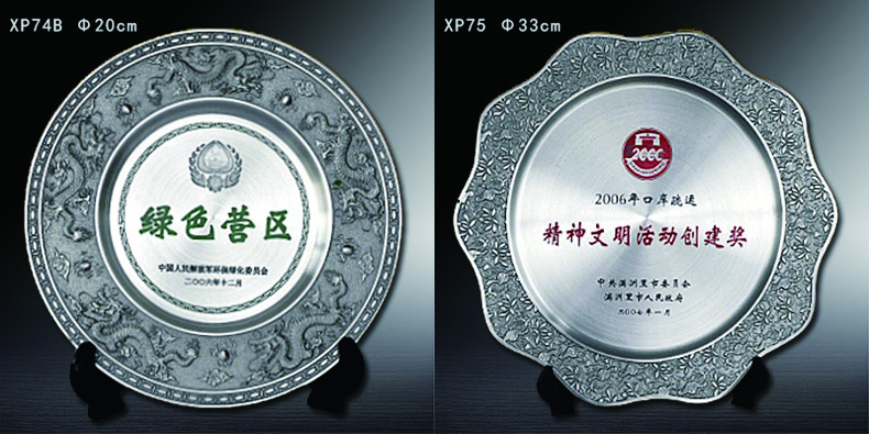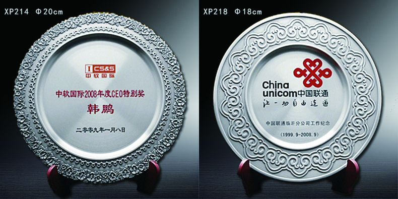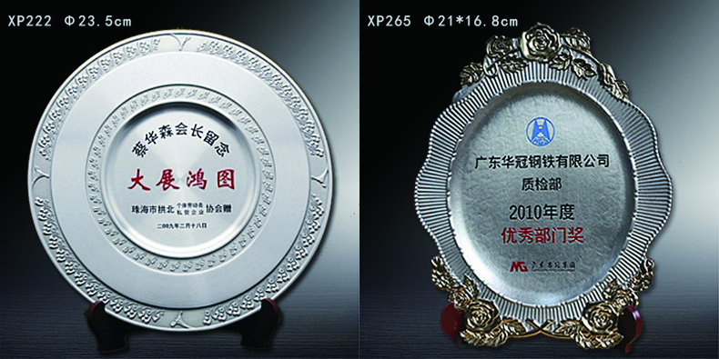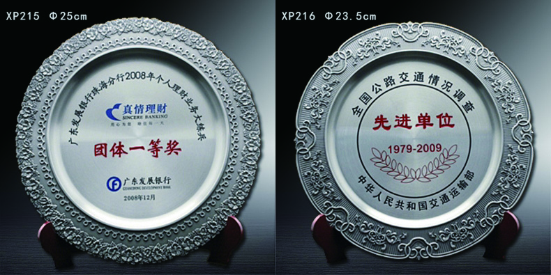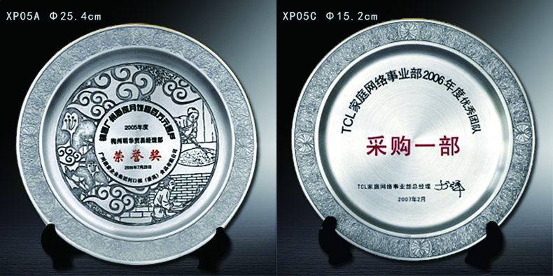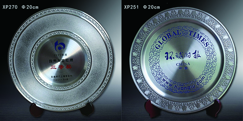 503 / 【纯锡奖盘】定制logo高档金属荣誉奖牌办公摆件退伍领导退休纪念品