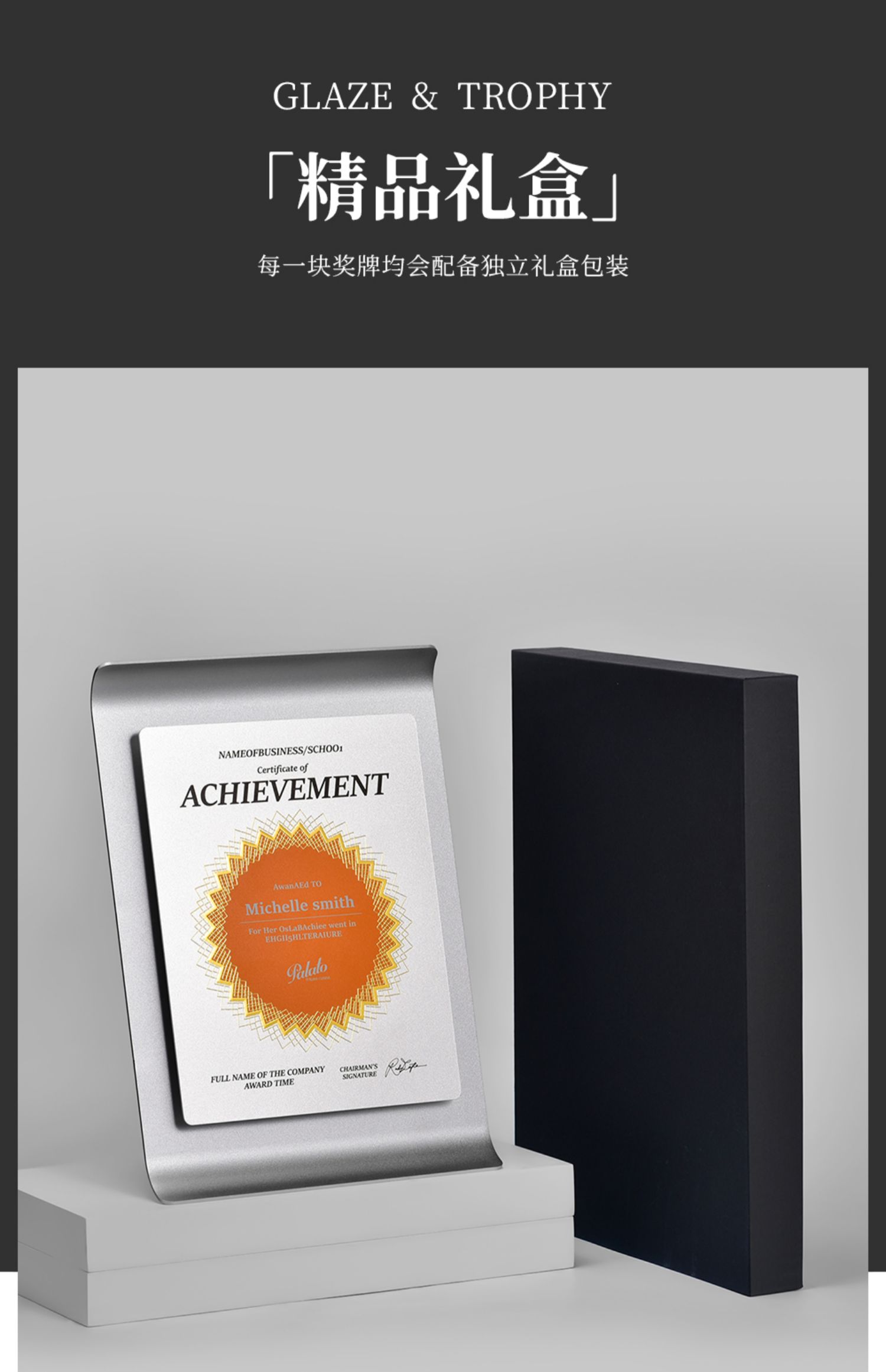 73 / 高档订制奖牌创意奖杯订做金属颁奖奖牌定制定做牌匾授权牌证书