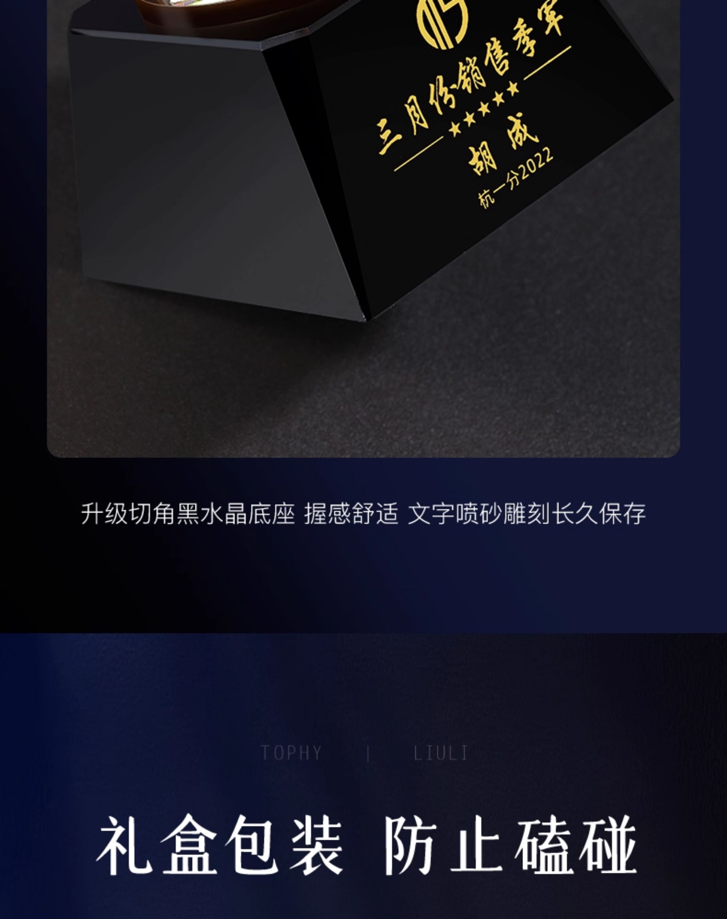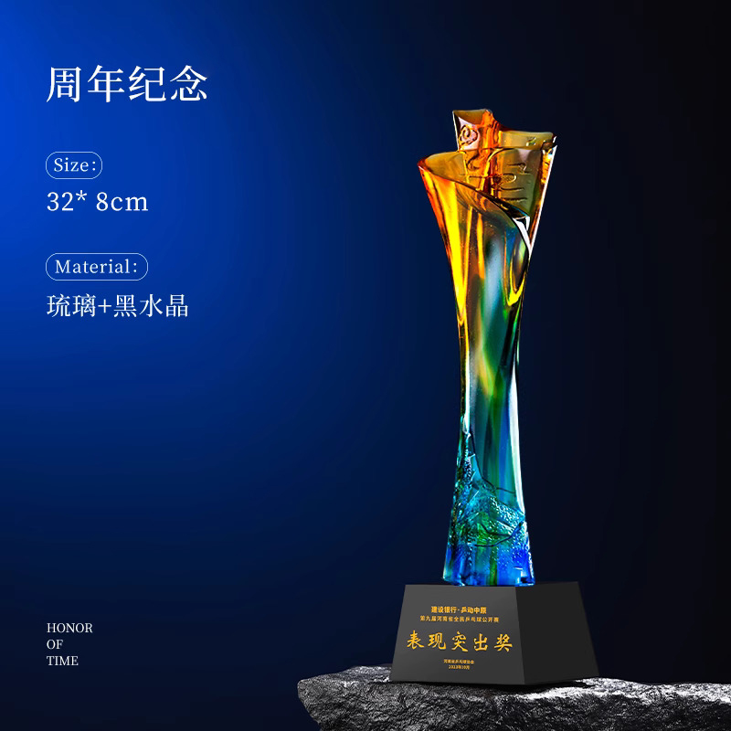104 / 【琉璃奖杯】定制定做刻字创意高端高档奖牌优秀员工颁奖纪念奖
