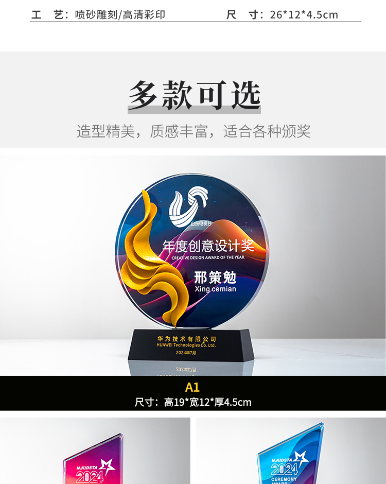 312 / 新款创意水晶奖杯定制奖牌优秀员工授权牌比赛颁奖高档大气纪念品