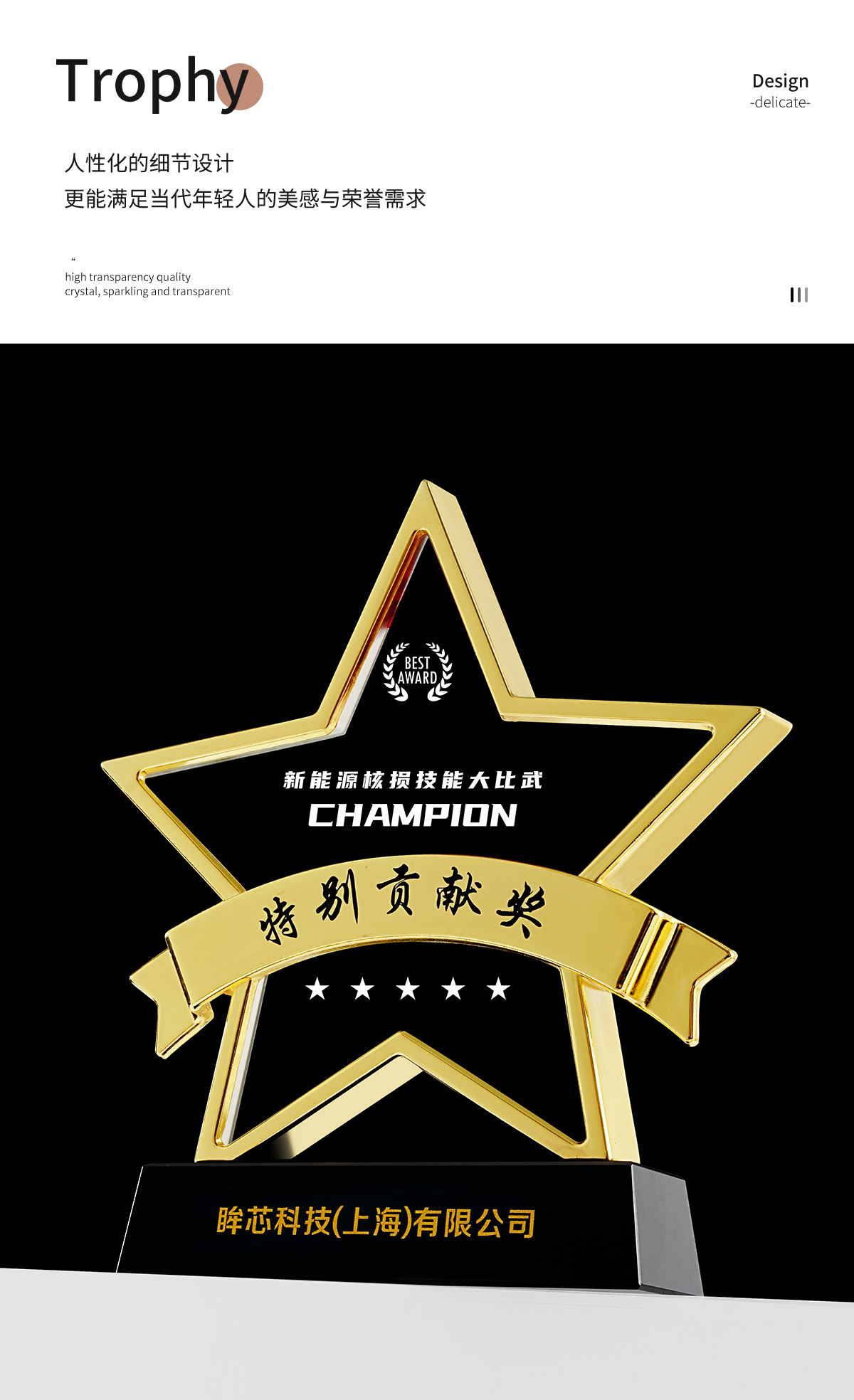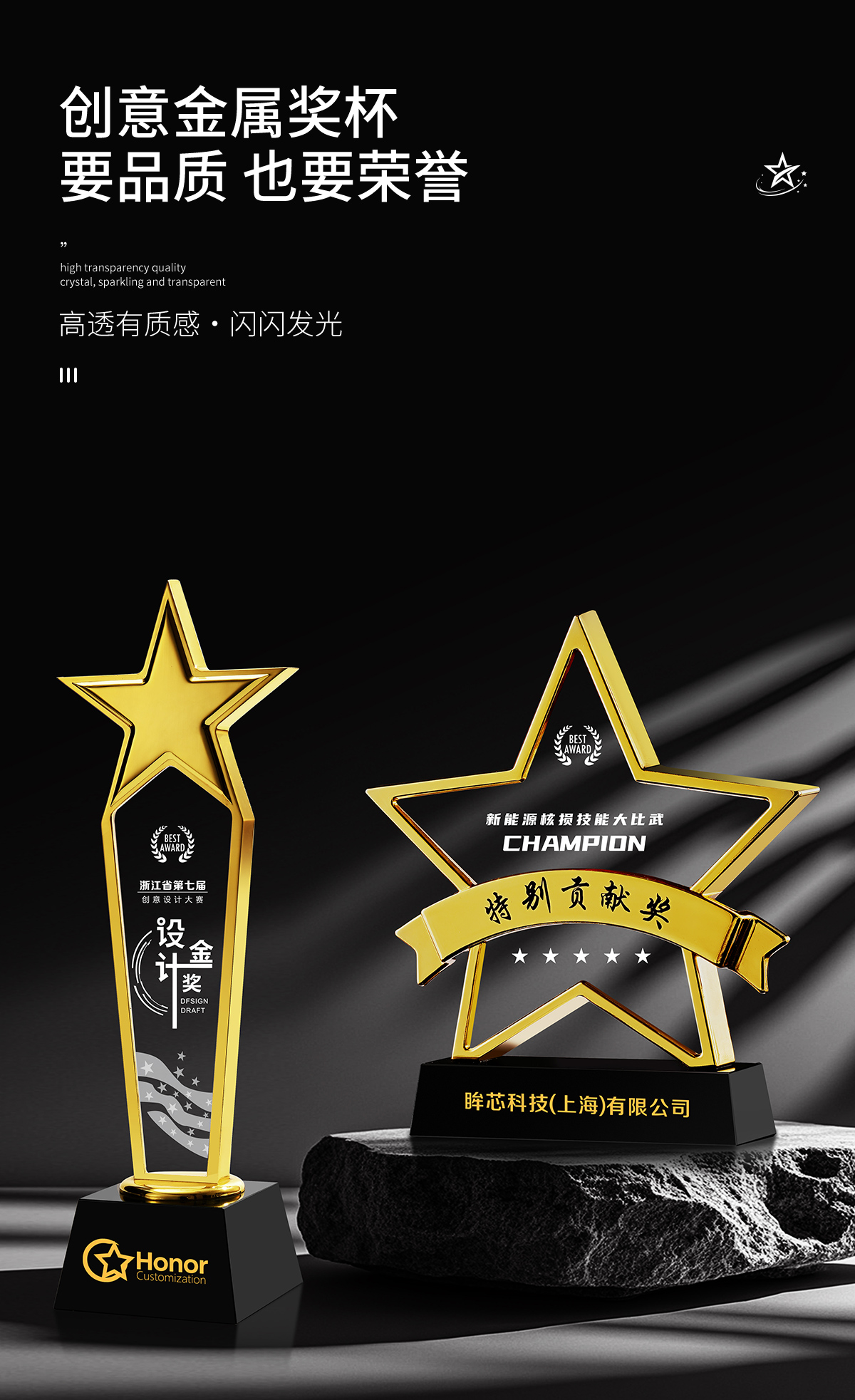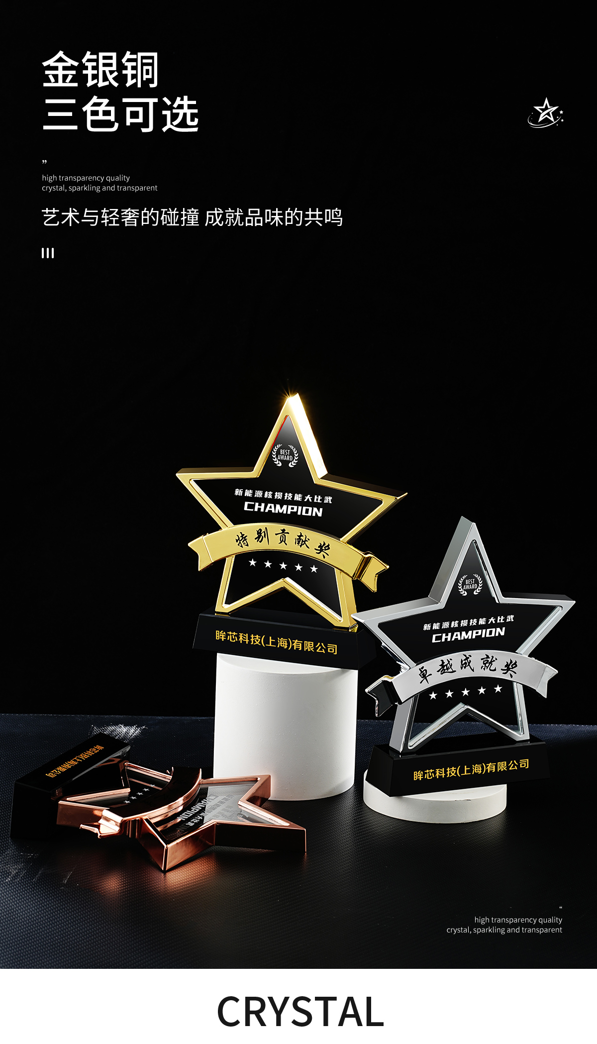 383 / 金属水晶奖杯定制做创意五角星比赛冠军荣誉年会优秀员工团队纪念