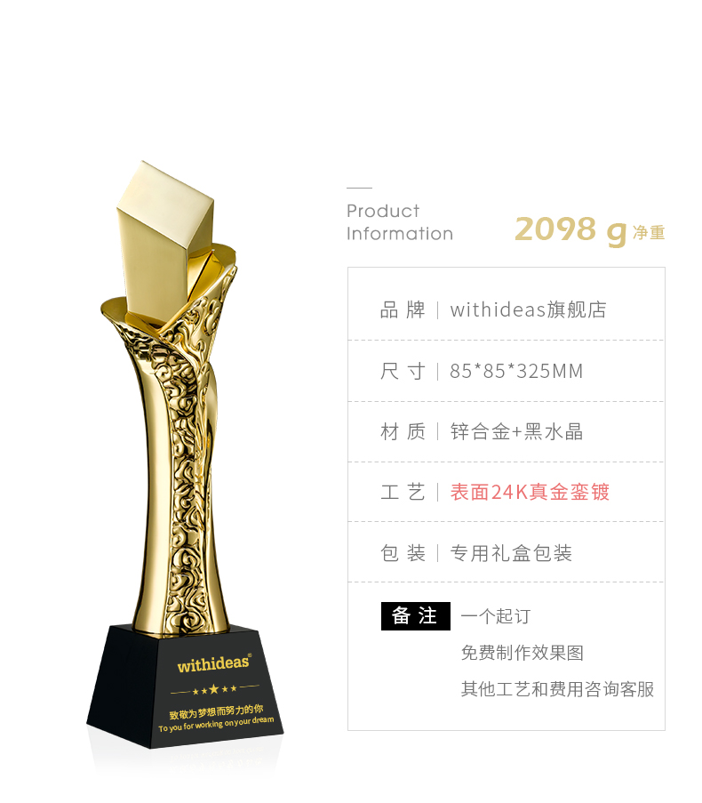 1090 / 高级高端大气金属奖杯创意制作年会企业公司刻字水晶奖牌定制定做