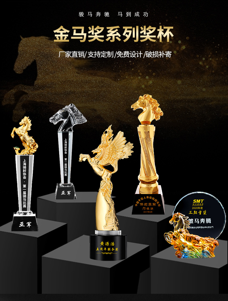 422 / 【生肖马主题】金马奖杯定制定做伯乐奖电影优秀员工荣誉颁奖水晶金属奖杯订制做
