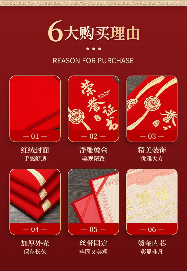1072 / 高档荣誉证书志愿者荣誉证书证件书封面外壳封皮内芯打印企业优秀员工表扬信绒面录取通知聘书获奖荣誉证书