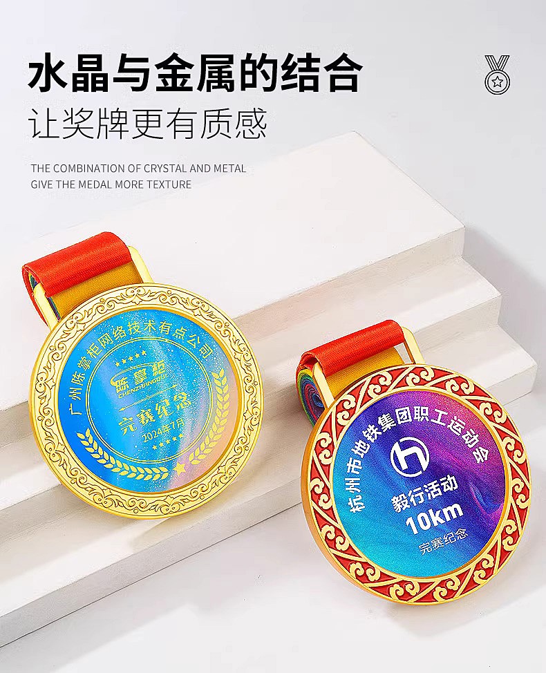 【金银铜牌】 水晶金属奖牌定制