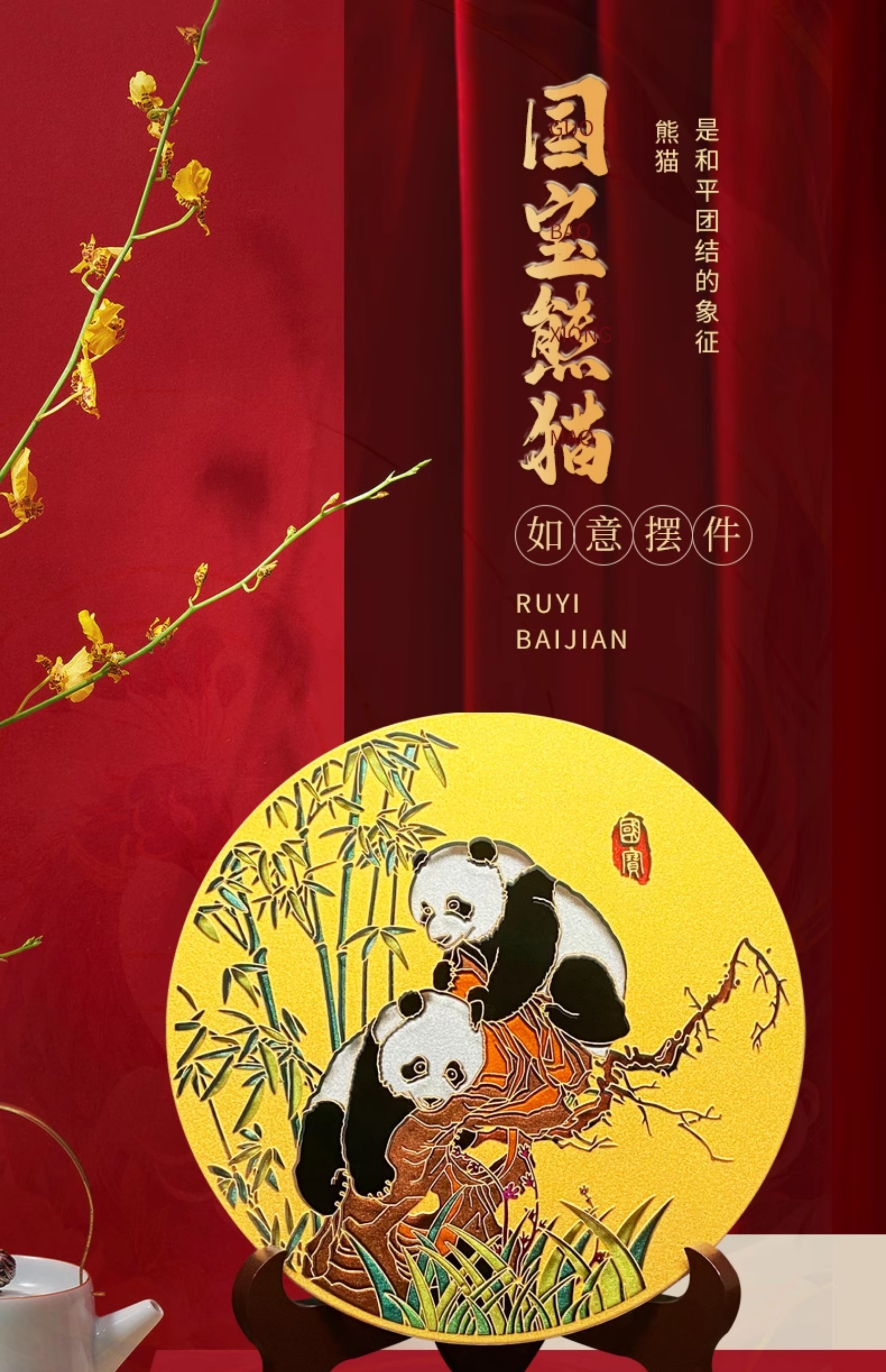 9 / 雅琅晶国宝熊猫摆件中国特色工艺品送外宾老外创意礼品高档定制