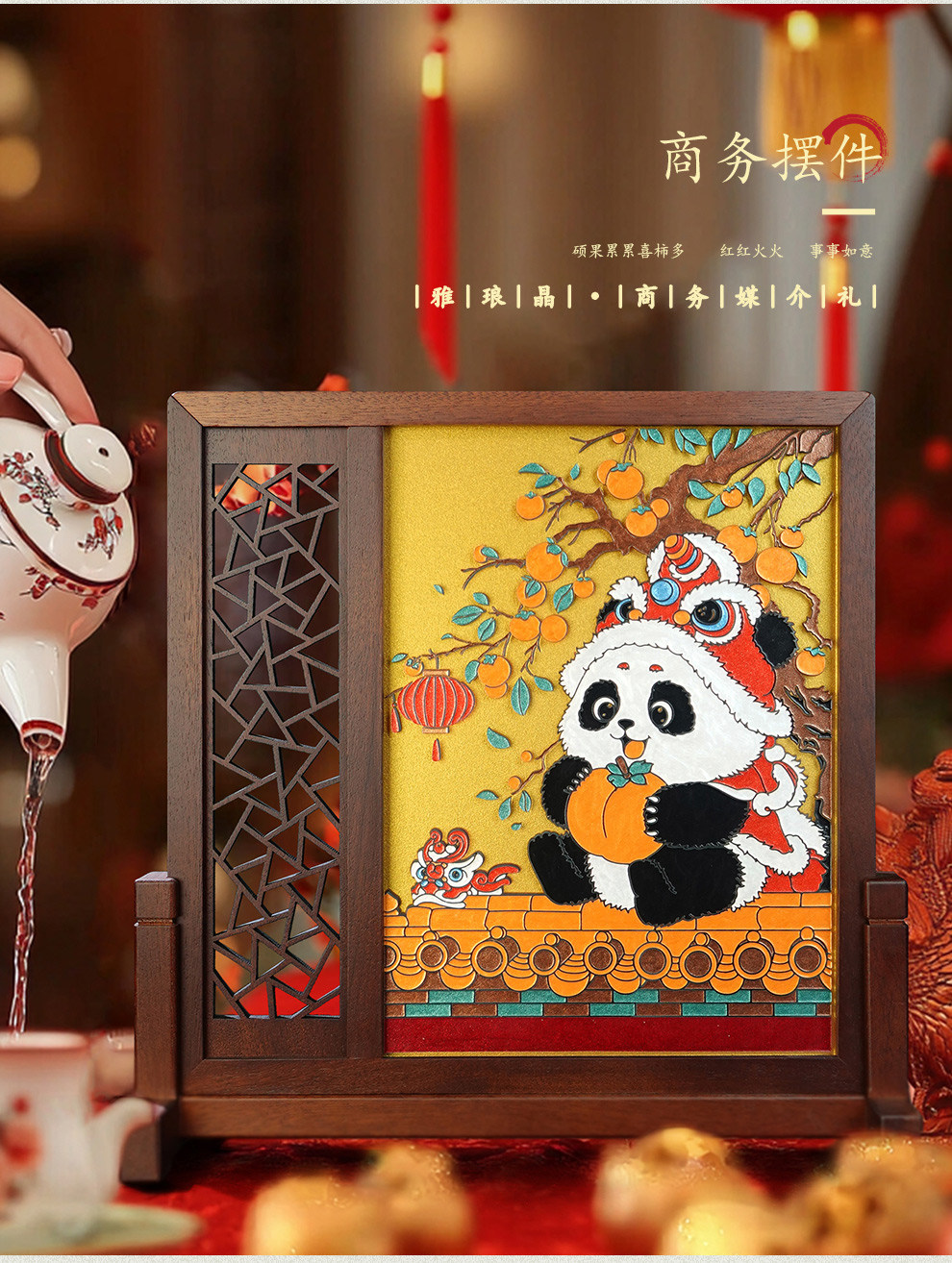 5 / 雅琅晶好事将近插屏摆件客厅桌面柿子如意装饰品开业乔迁新居礼品