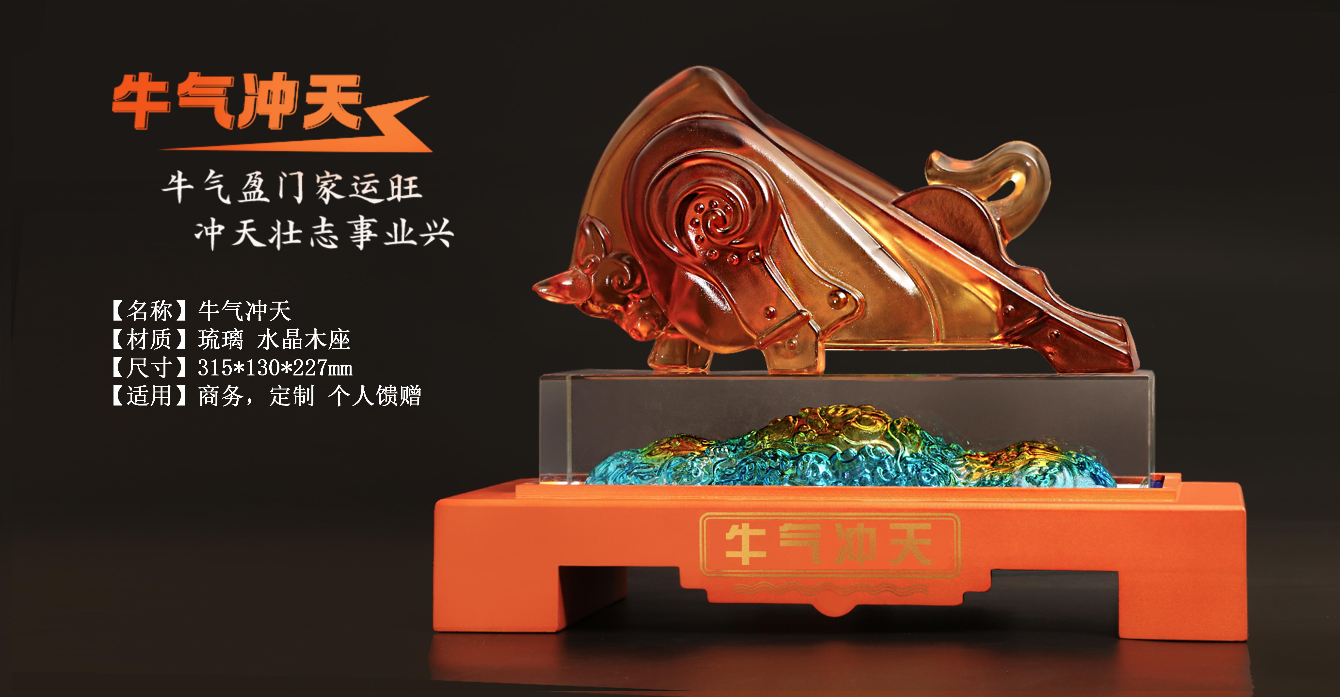 72 / 牛气冲天-势在必得牛摆件琉璃工艺品招财牛客厅办公室酒柜装饰公司开业礼物