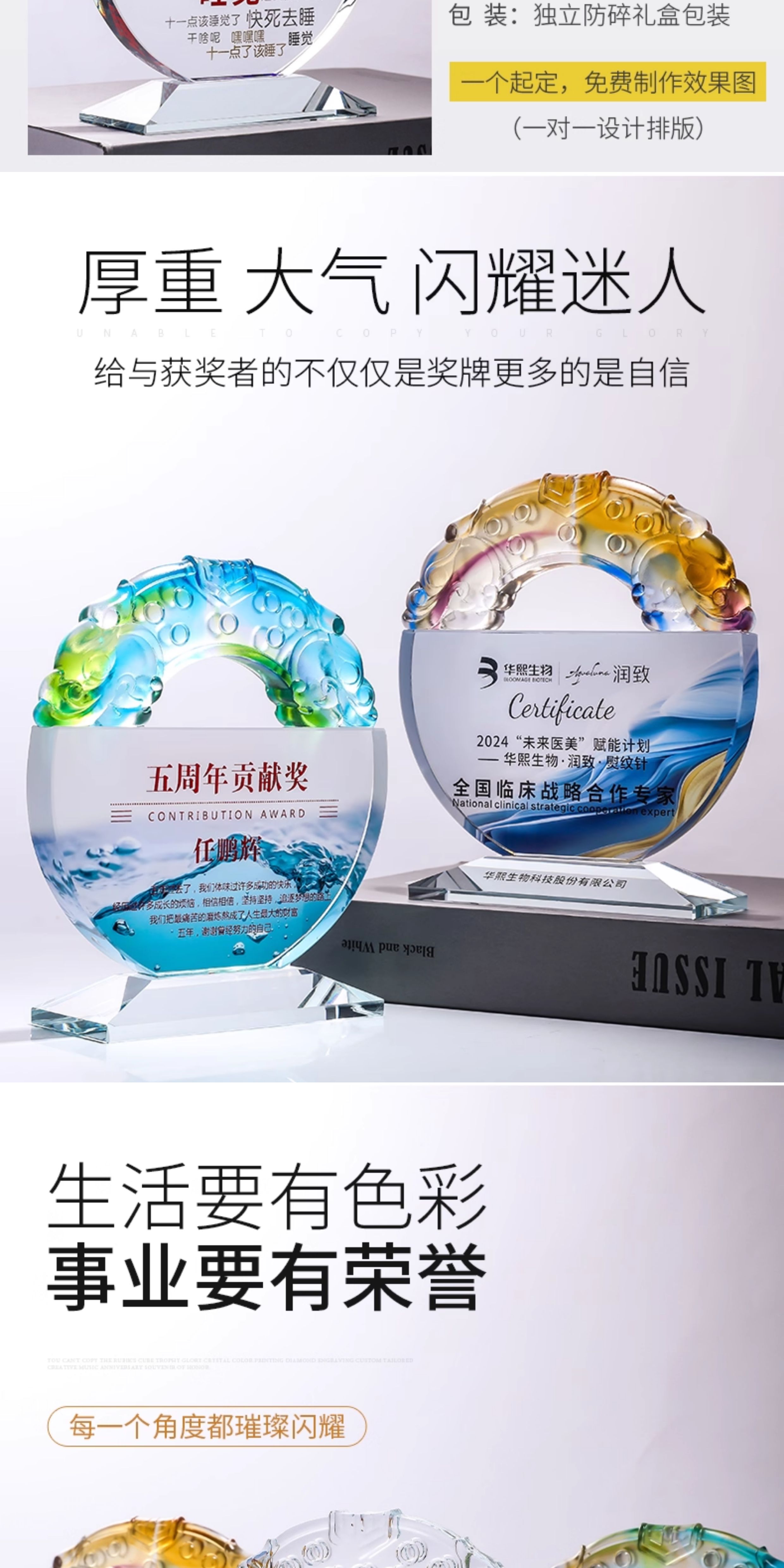 炫彩色彩印水晶奖