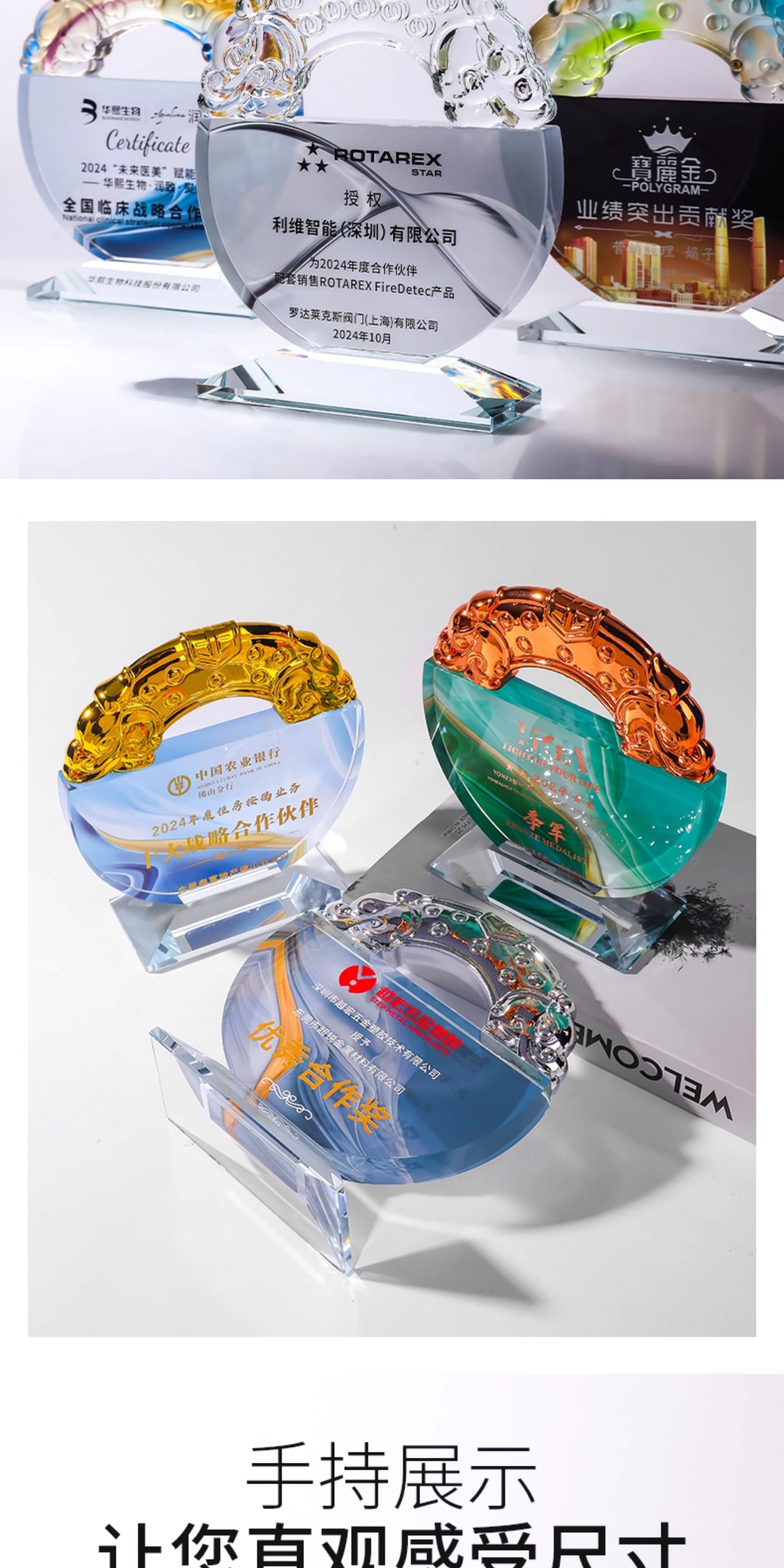 175 / 2025新款水晶琉璃奖杯定制高档大气创意表彰员工年会荣誉纪念奖牌