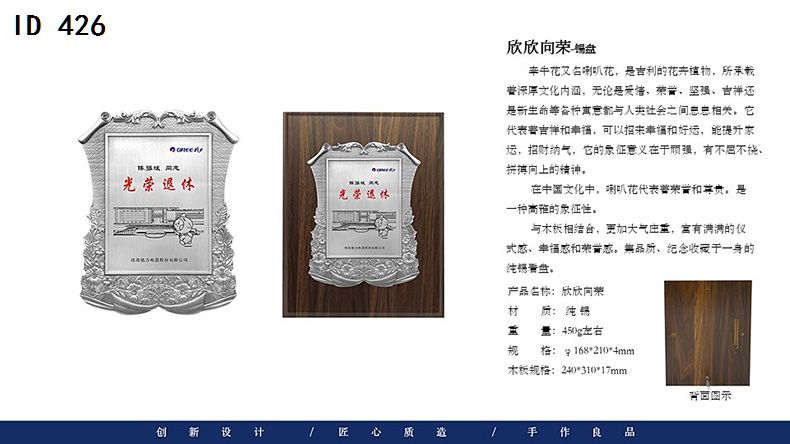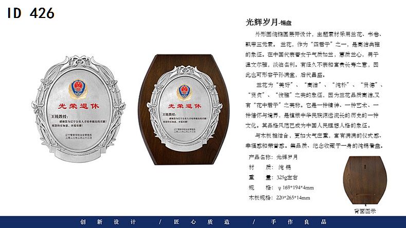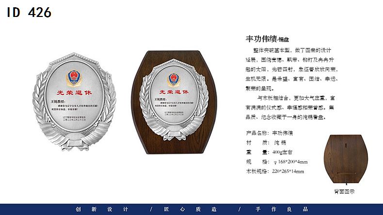 506 / 金属纯锡奖牌锡牌定制定做感谢牌授权牌证书木托聘书奖状